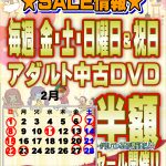 今月もやってます、アダルトDVD半額セール!! 金・土・日の3日間、欲しかったあのDVDがいつもの半額で購入できるチャンスです!! 新入荷コーナーには、ソフトオンデマンド、プレステージ、S1など人気の …