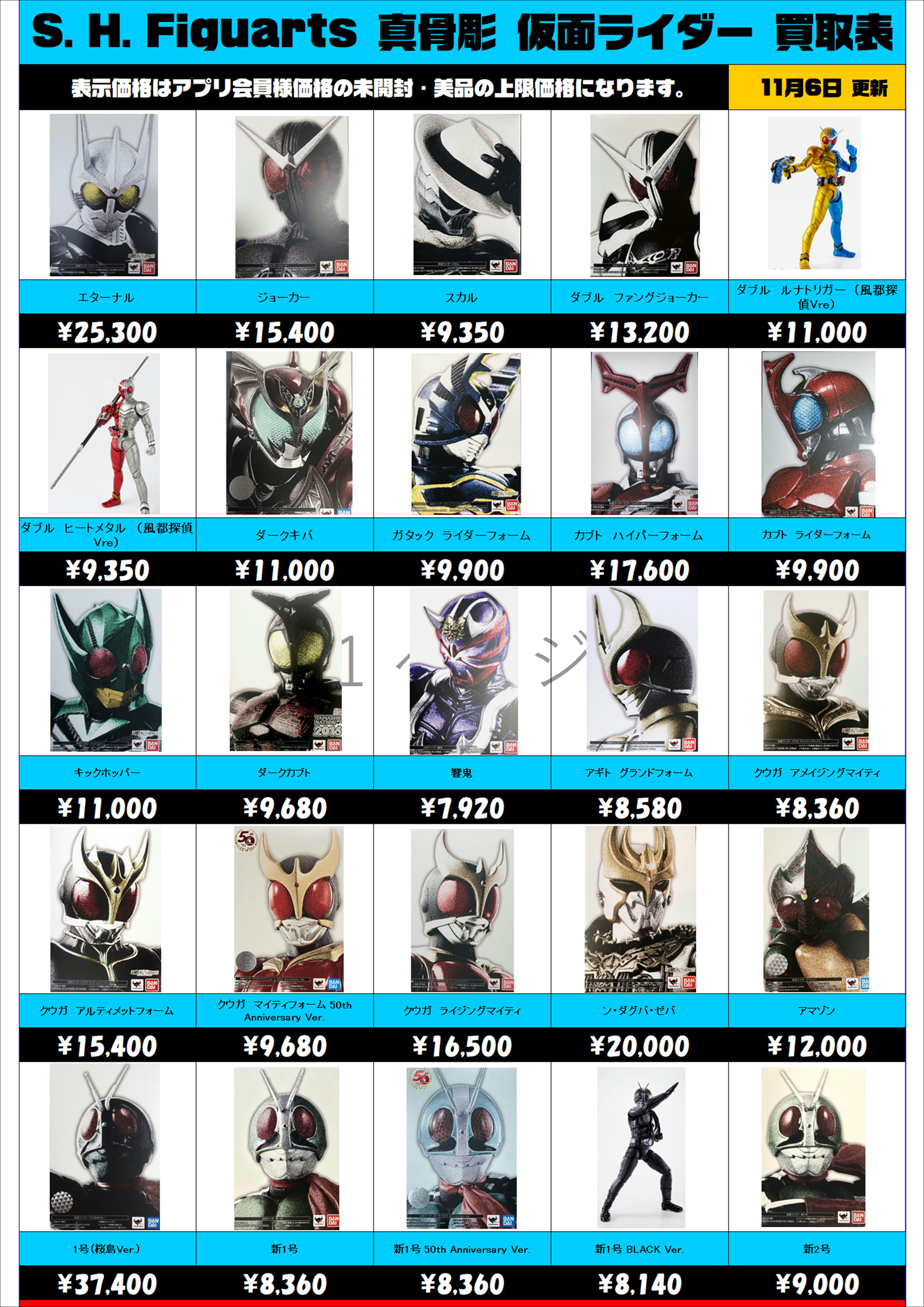 S.H.Figuarts 仮面ライダー 真骨彫 買取表更新しました! 11/6~