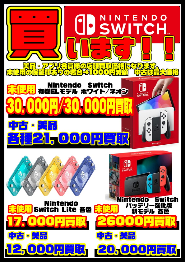 NSW 未使用 中古品 NSW 有機EL版 ネオン 39,000 26,000 NSW 有機EL版 ホワイト 38,000 25,000 NSW 有機EL版 マイニンテンドー 30,000 23,5 …
