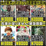 最新コミック買取強化中!!! 人気タイトルのコミックを買取強化中です。 価格は会員様価格になります。 在庫状況により価格は変動致します。 お気軽にお問い合わせください。 タ イ ト ル 巻数 買取額 …