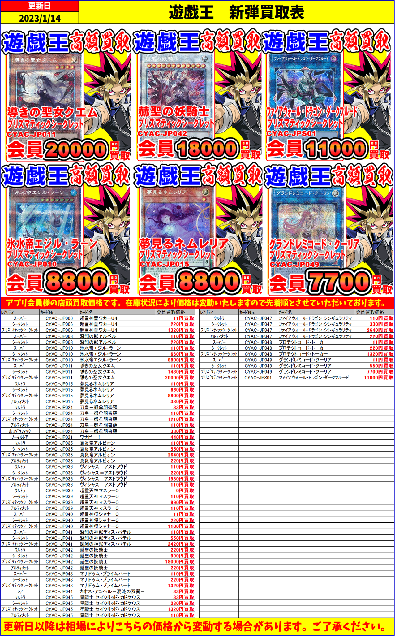 ※表示価格はアプリ会員様・店頭買取の美品の上限価格になります。 在庫状況・状態で金額が予告なく変動する場合がございます。 ※2万を超えるカードは1枚までの査定になります。 お1人様の1日買取上限20万 …