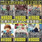 タイトル 巻数 買取価格 キングダム 1~78 19500 葬送のフリーレン 1~15 6000 薬屋のひとりごと~猫猫の後宮謎解き手帳~ 1~21 8000 薬屋のひとりごと 1~16 6500 ダ …