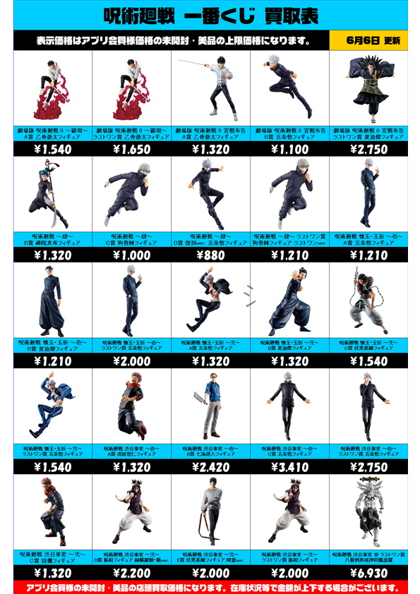 商品名 買取価格 一番くじ 呪術廻戦 ~弐~ A賞 虎杖悠仁フィギュア 880 一番くじ 呪術廻戦 ~弐~ B賞 伏黒恵フィギュア 880 一番くじ 呪術廻戦 ~弐~ C賞 釘崎野薔薇フィギュア 88 …