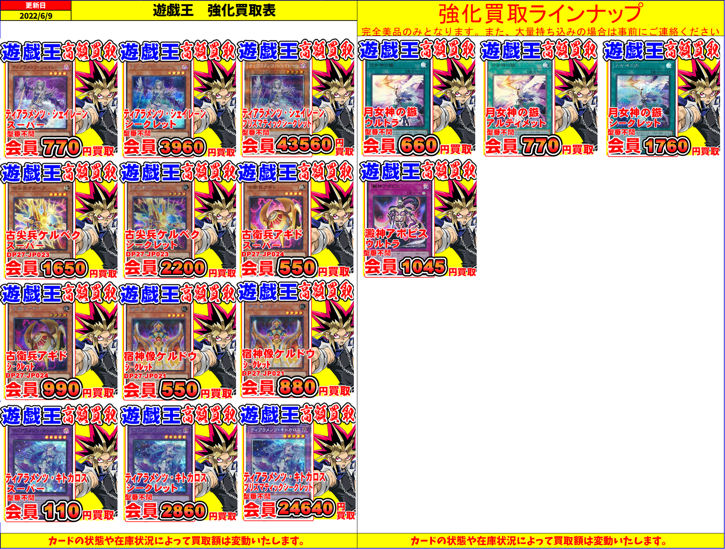 予告なく在庫・相場で変動する場合と買取上限がございます。
