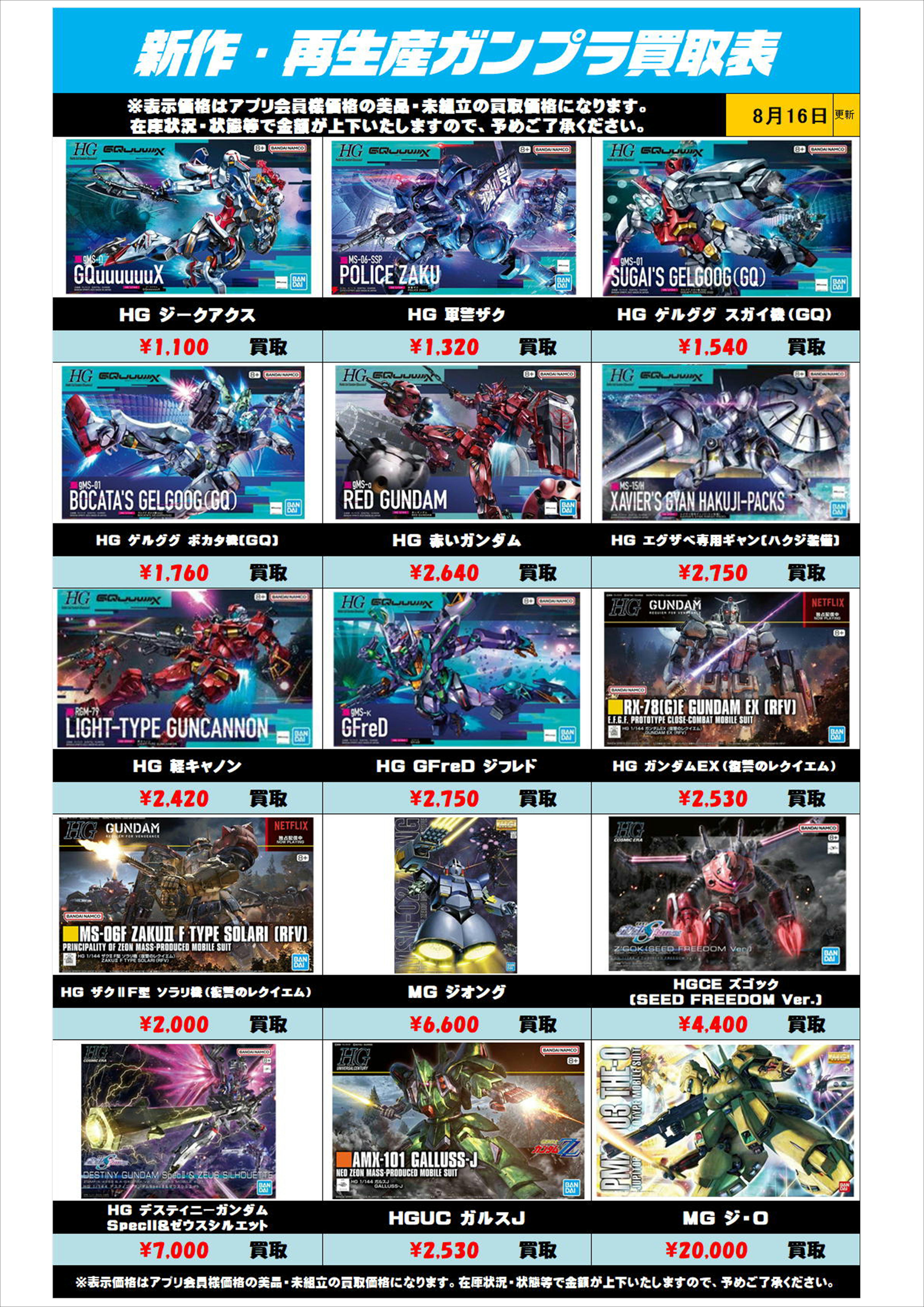 新作・再販ガンプラ買取リスト更新しました! 8/16~ プラスアップキャンペーンも実施中です!