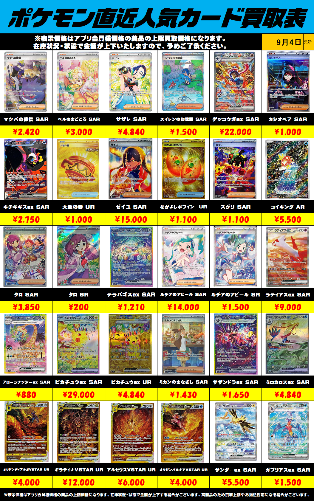ポケモン直近シングルカード 買取リスト更新しました! VSTARユニバース~ブラックボルト・ホワイトフレア 9/4~