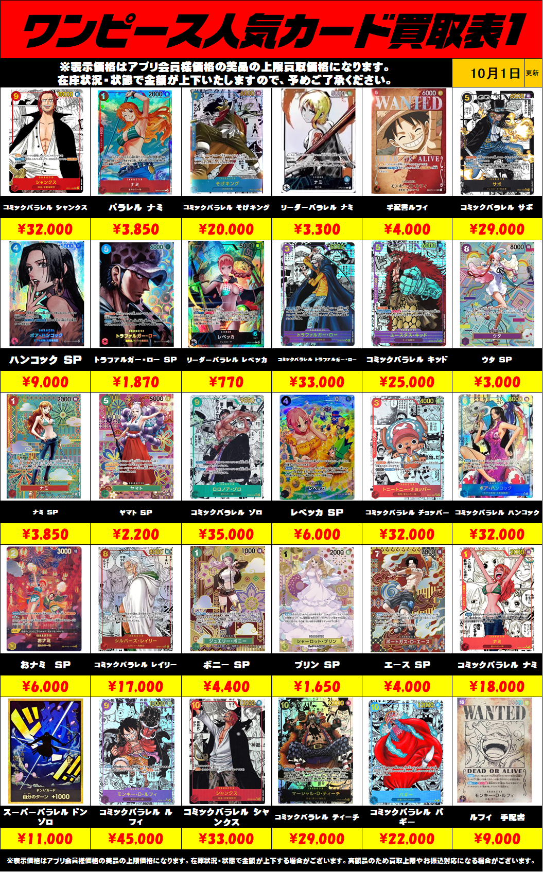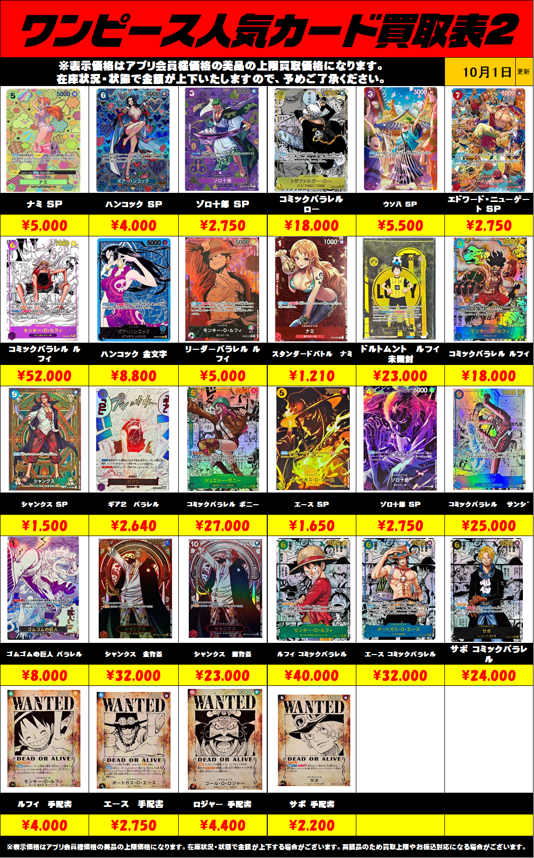 名称 買取金額 ワンピース KING OF ARTIST ルフィ ギア5 Ⅱ 550 ワンピース KING OF ARTIST ロブ・ルッチ Awakening ver. 330 ワンピース KING …