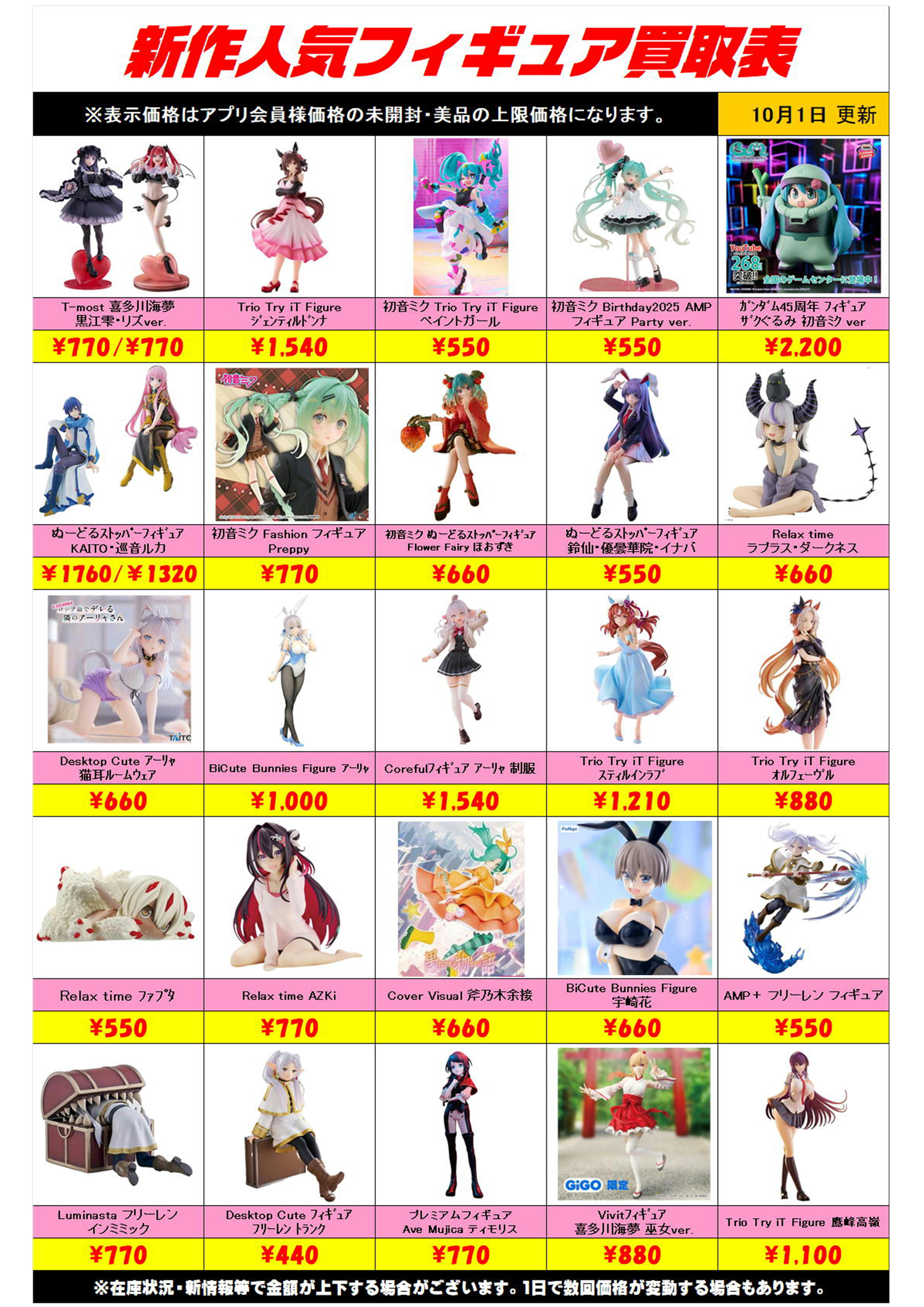 新作プライズフィギュア買取リスト更新しました! 10/1~ プラスアップキャンペーンも実施中です!