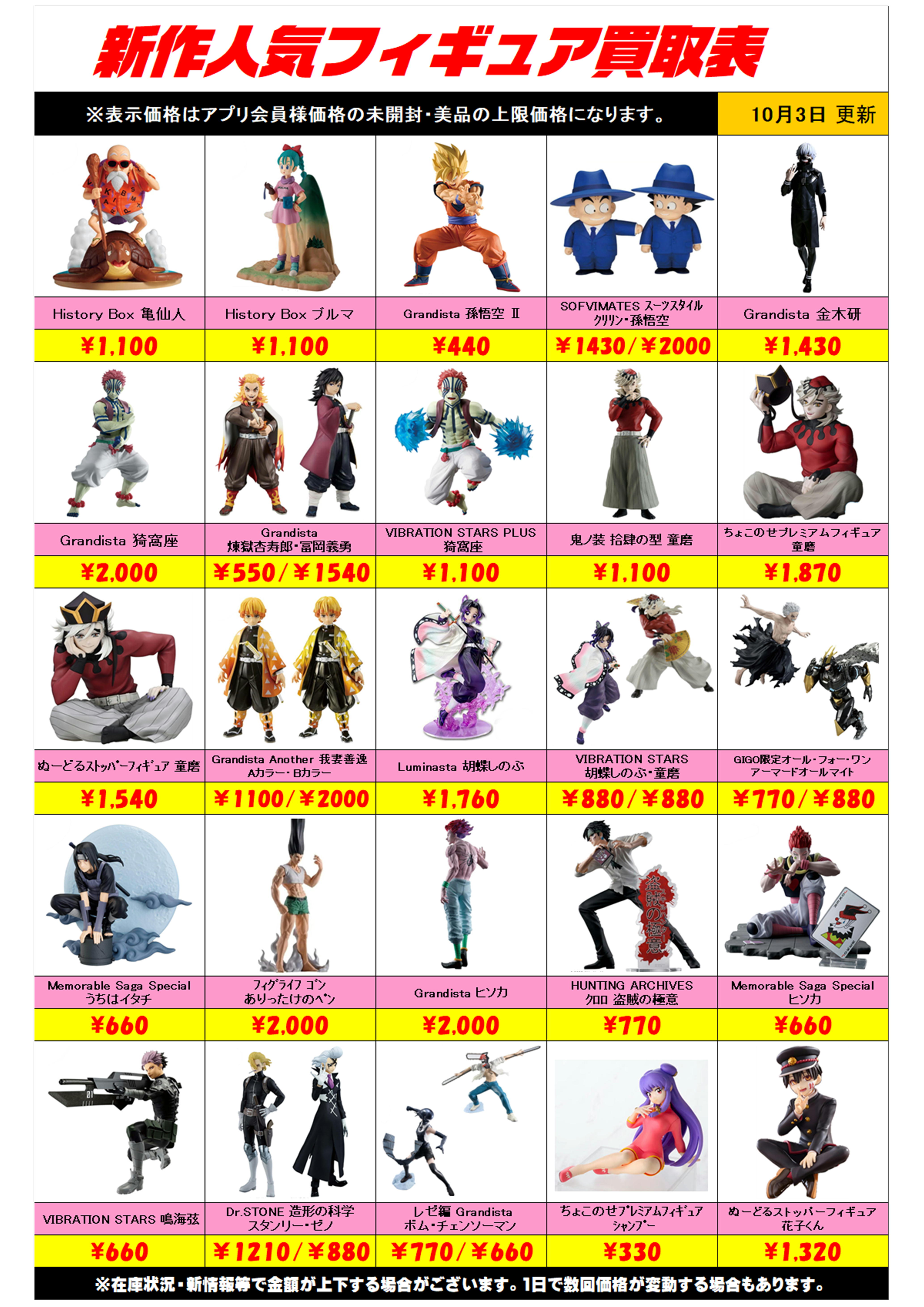 新作プライズフィギュア買取リスト更新しました! 10/3~ プラスアップキャンペーンも実施中です!