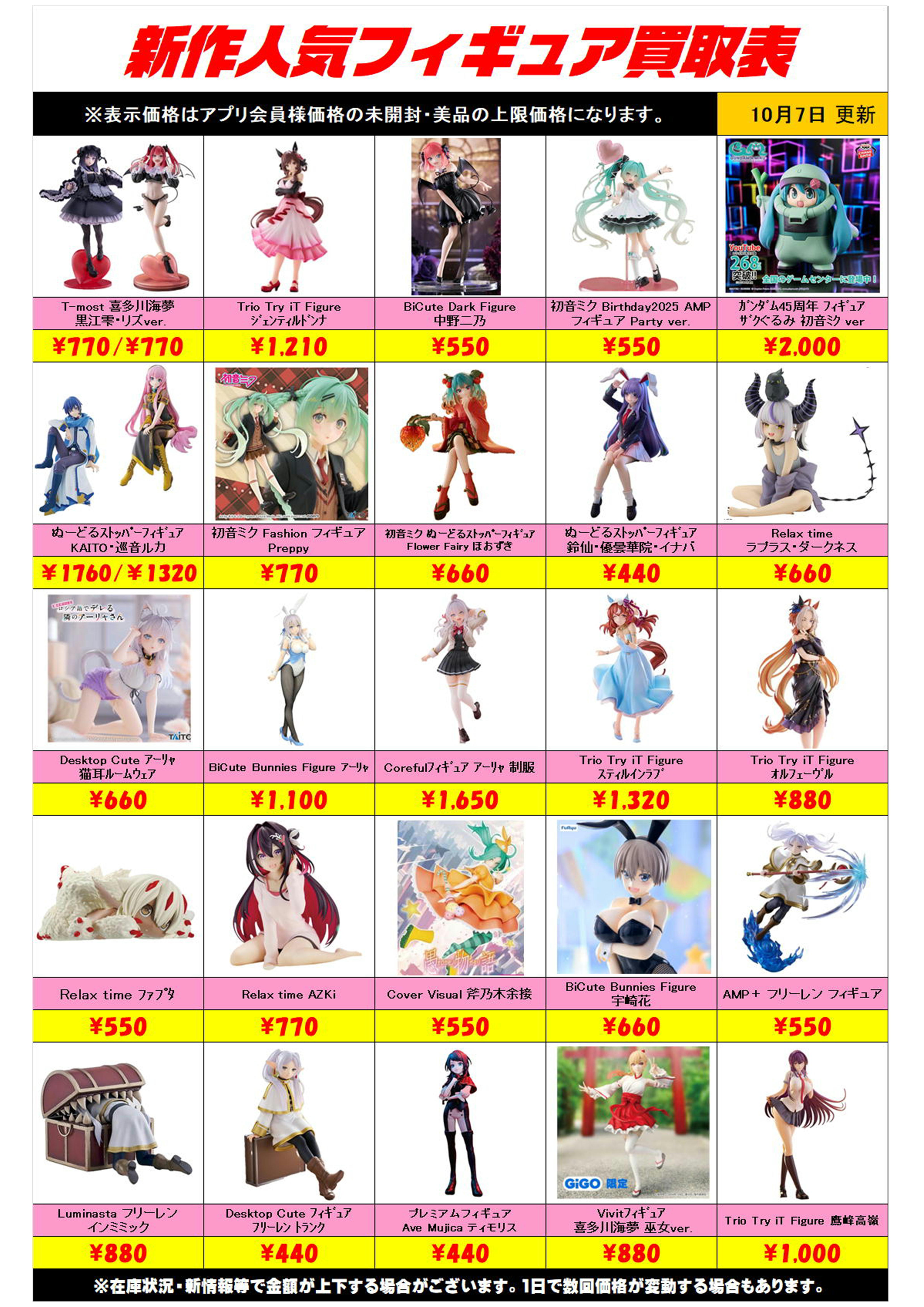 新作プライズフィギュア買取リスト更新しました! 10/7~ プラスアップキャンペーンも実施中です!