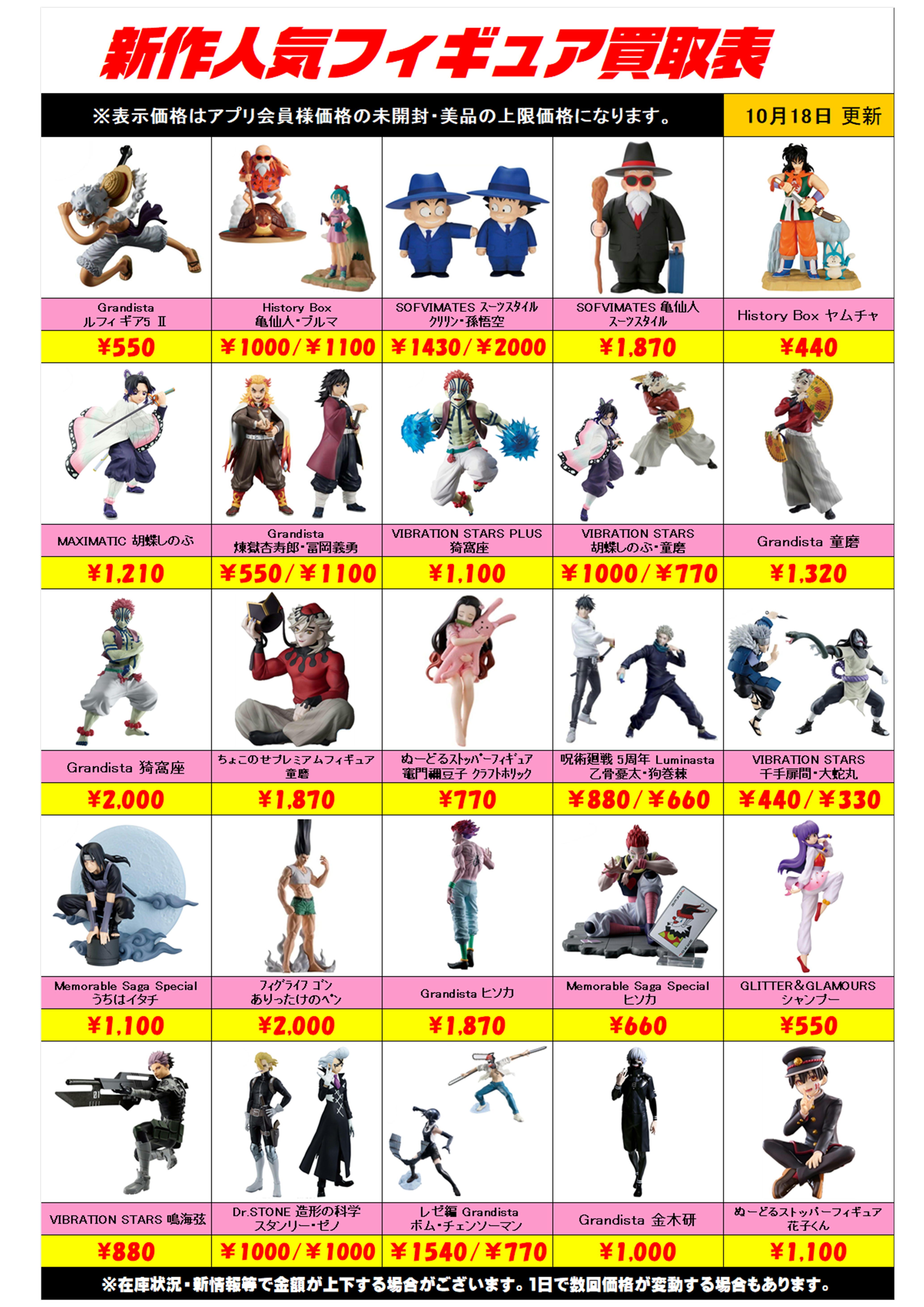 新作プライズフィギュア買取リスト更新しました! 10/18~ プラスアップキャンペーンも実施中です!