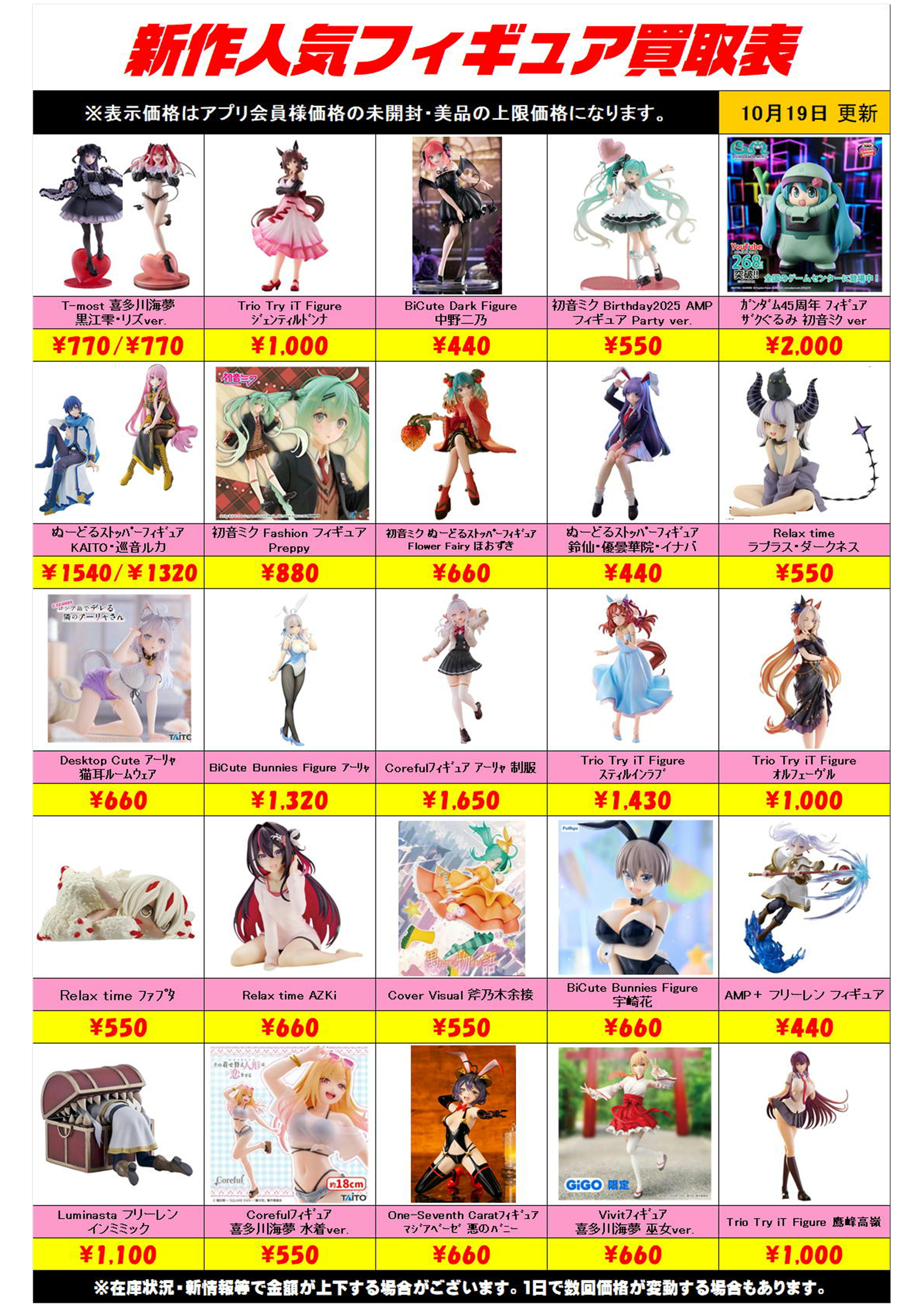 新作プライズフィギュア買取リスト更新しました! 10/19~ プラスアップキャンペーンも実施中です!