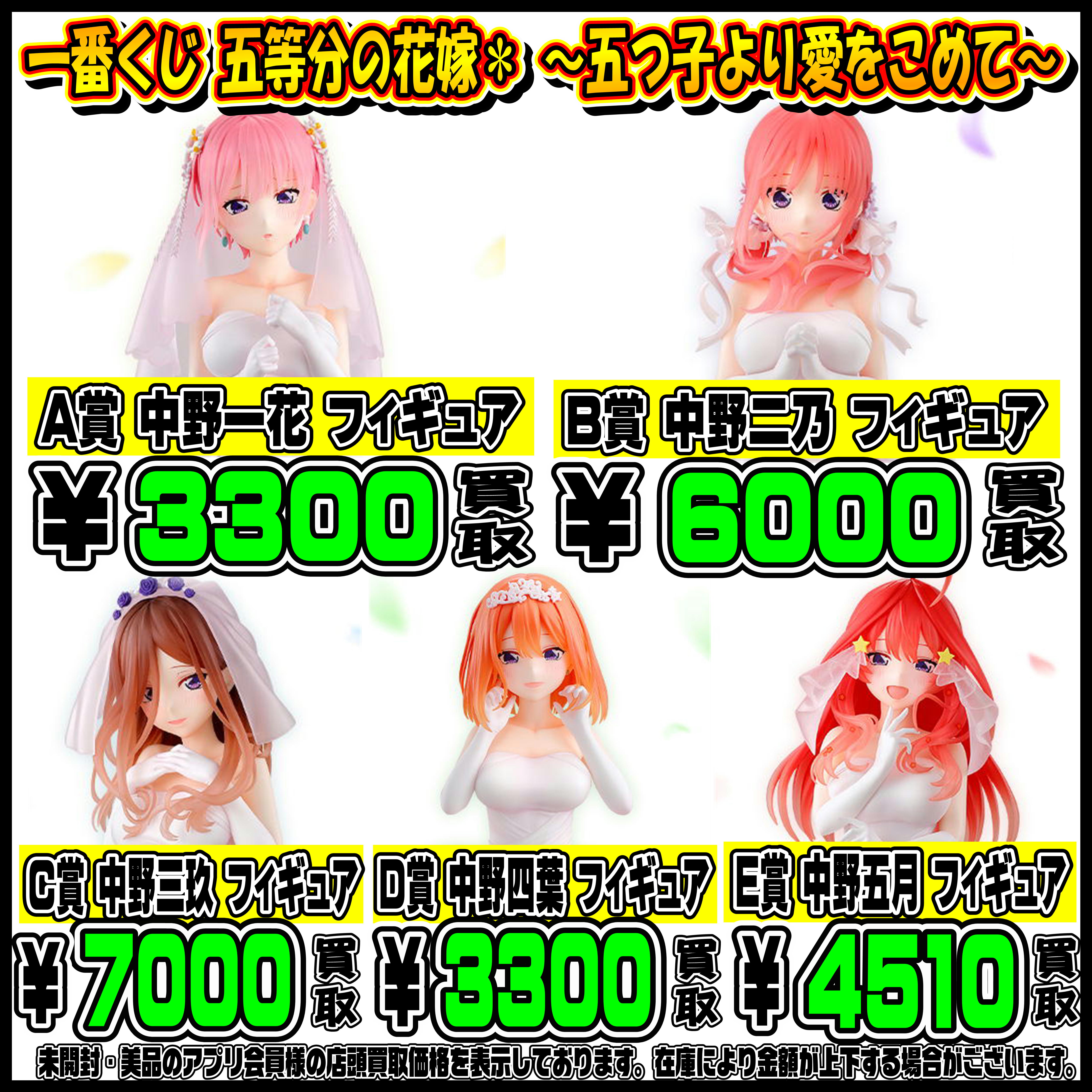 新作一番くじ買取リスト更新しました! 10/26~ゴジラ・ヒロアカ ・五等分の花嫁など