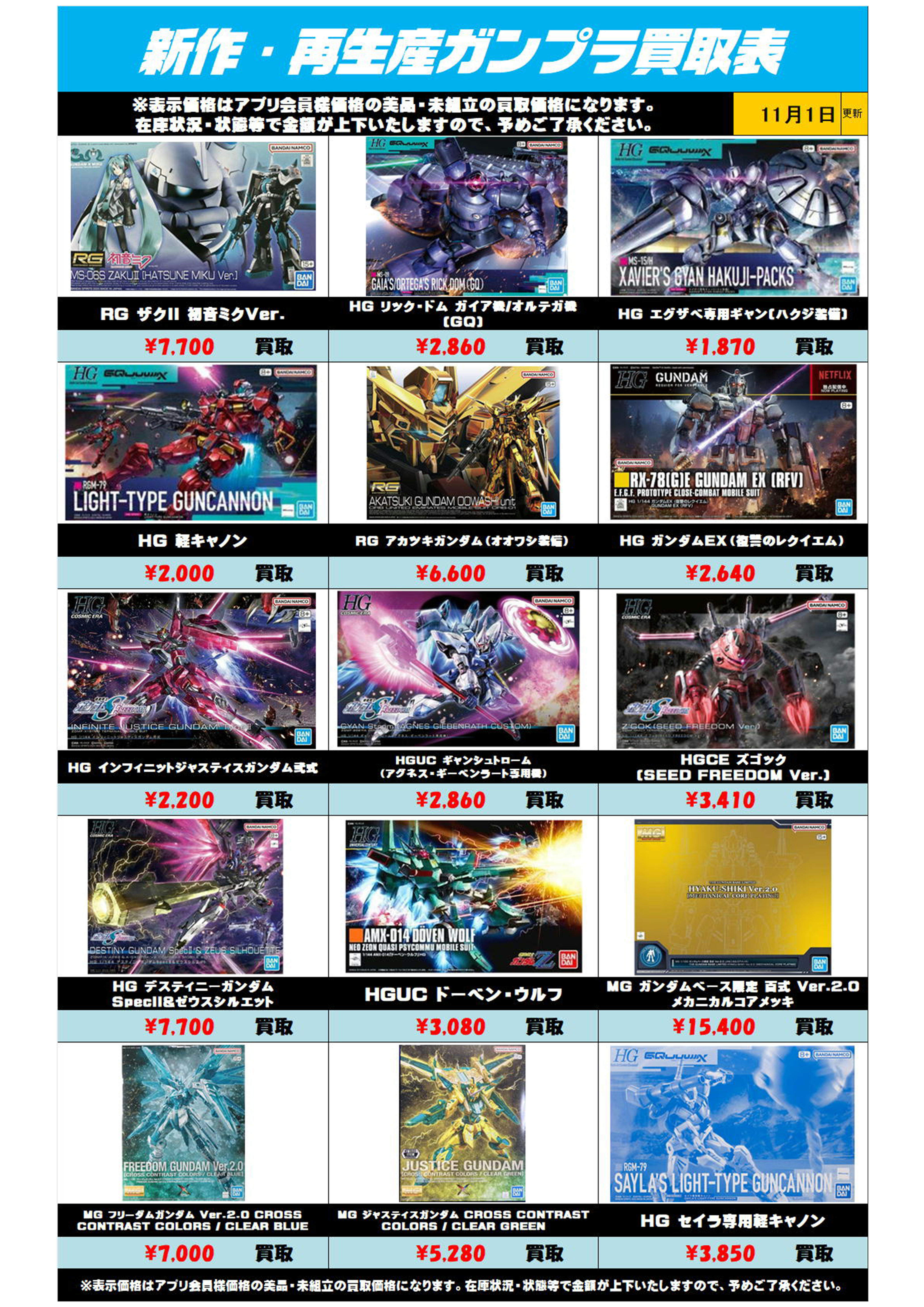 新作・再販ガンプラ買取リスト更新しました! 11/1~ プラスアップキャンペーンも実施中です!