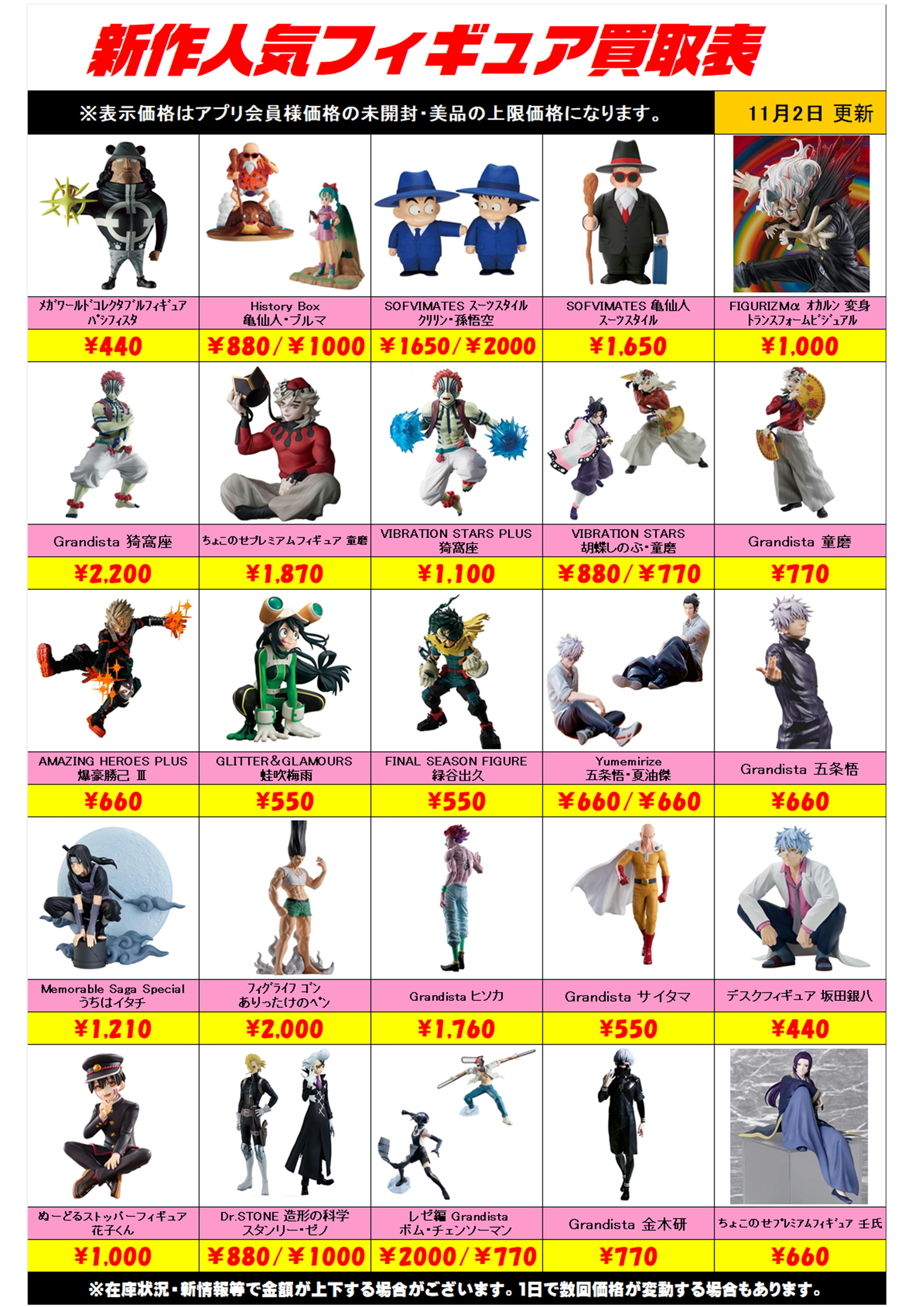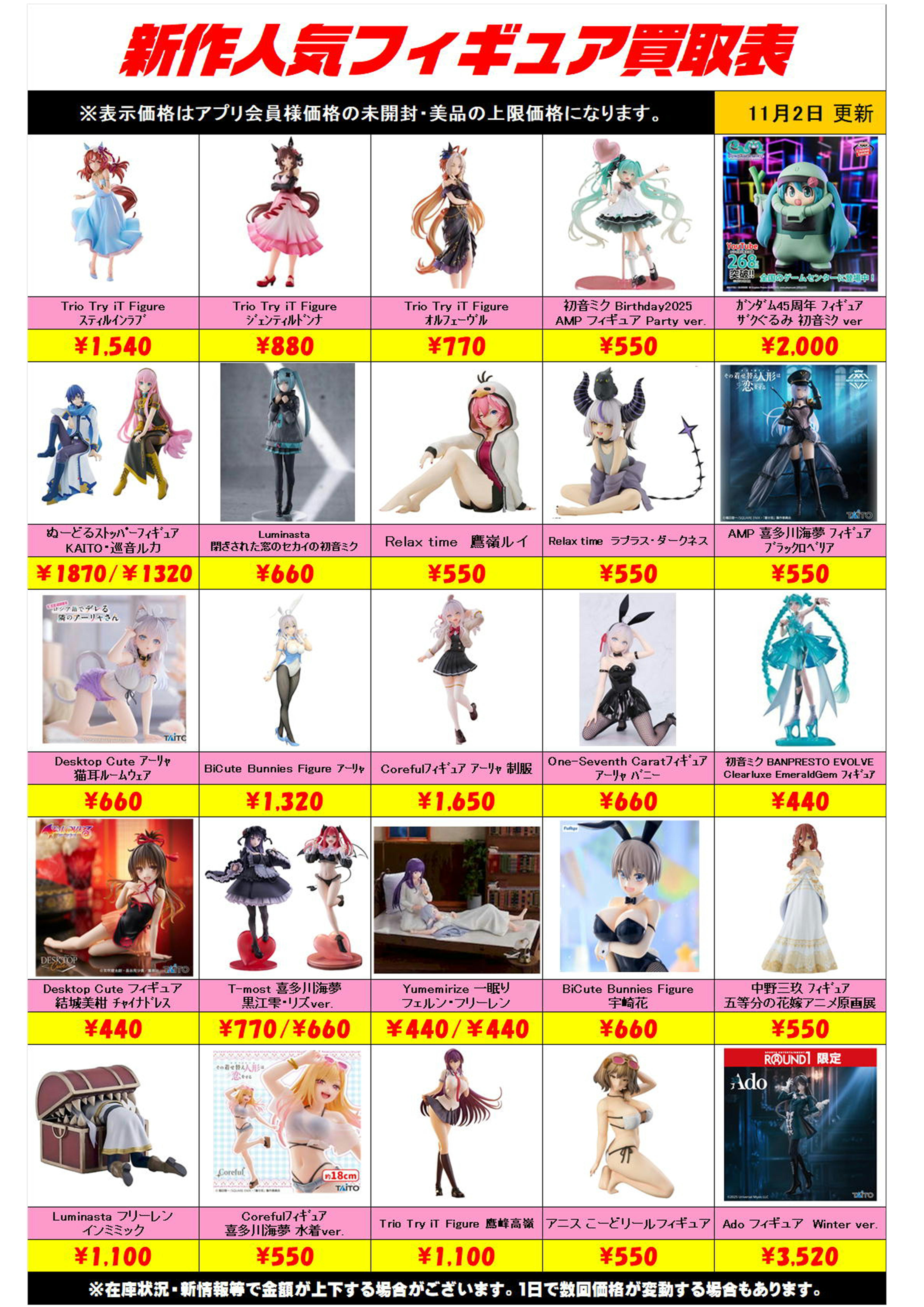 新作プライズフィギュア買取リスト更新しました! 11/2~ プラスアップキャンペーンも実施中です!