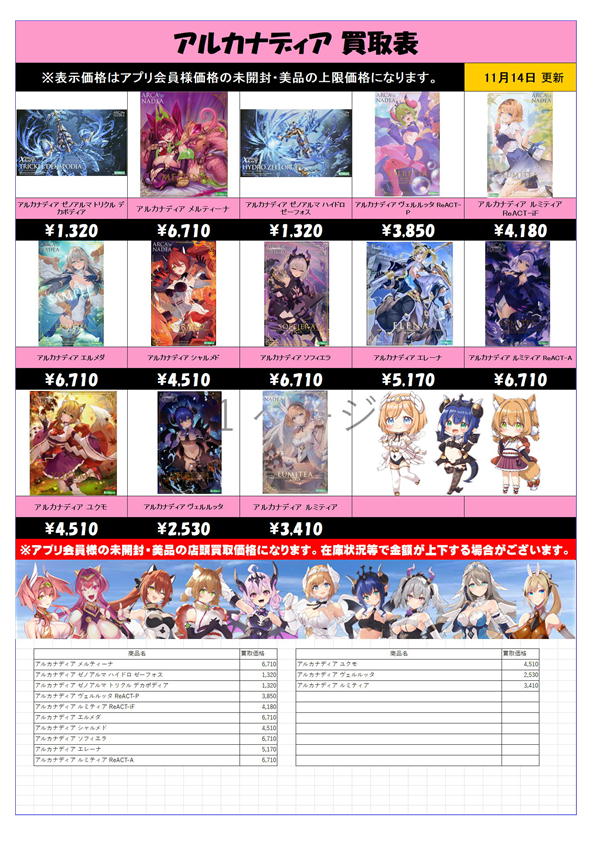 美少女プラモデル アルカナディアシリーズ 買取価格更新しました! 11/14~