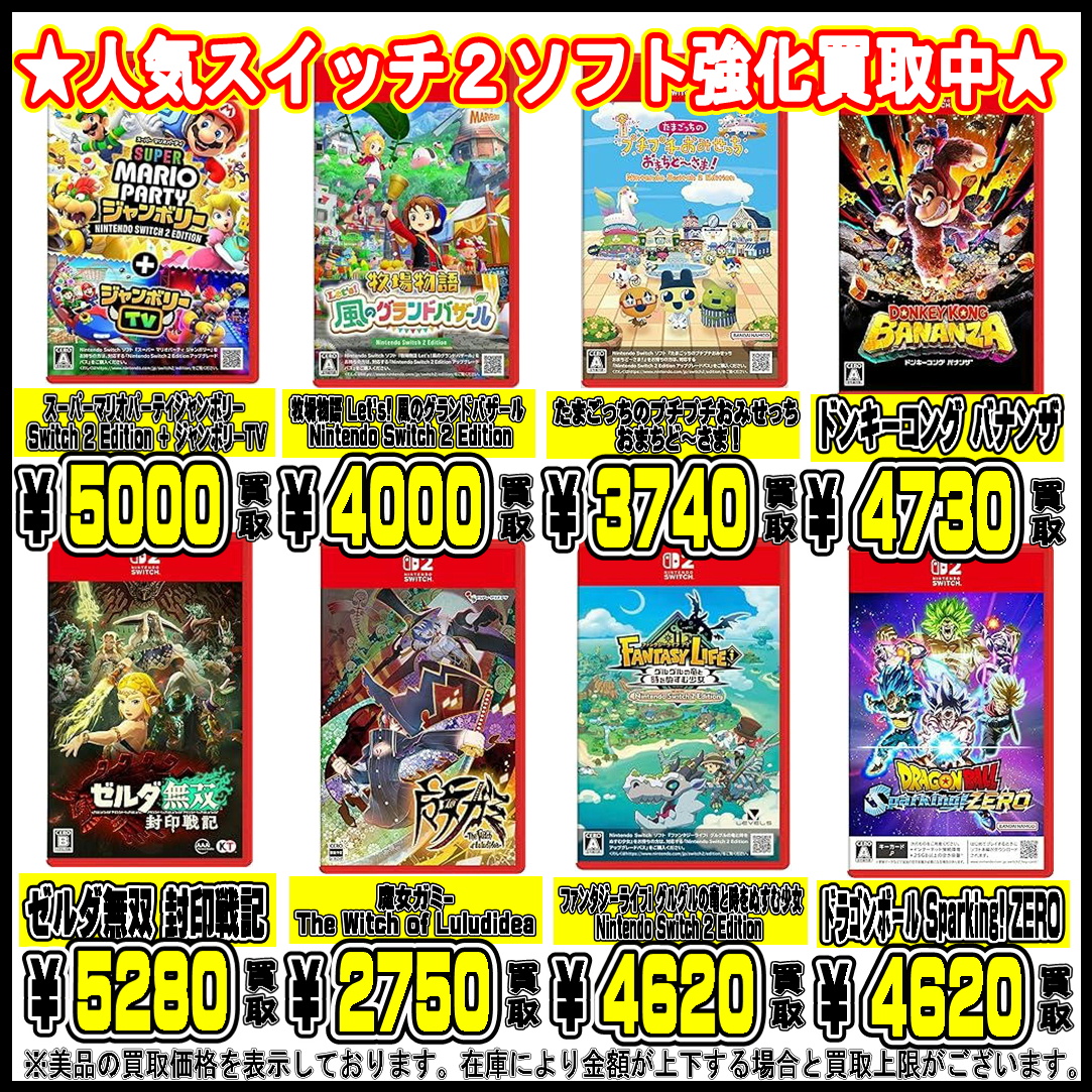 商品名 会員買取価格 あつまれ どうぶつの森 3740 リングフィット アドベンチャー 5720 マリオカート8 デラックス 4400 大乱闘スマッシュブラザーズ SPECIAL 5280 スーパー …
