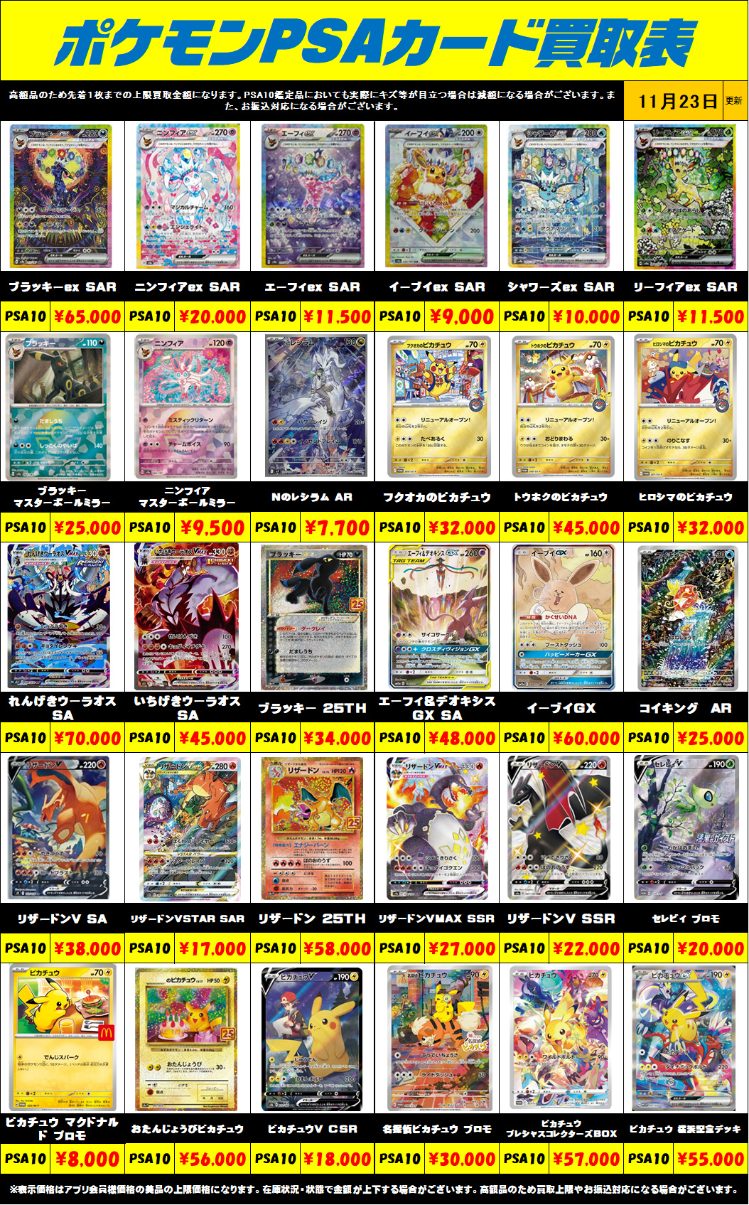 ※表示価格はアプリ会員様・店頭買取の美品の上限価格になります。 相場の変動が激しい為、在庫状況・状態・相場等で金額が予告なく大きく変動する場合がございます。PSAは、おひとり様最大で1日20万円までのお買取りになります