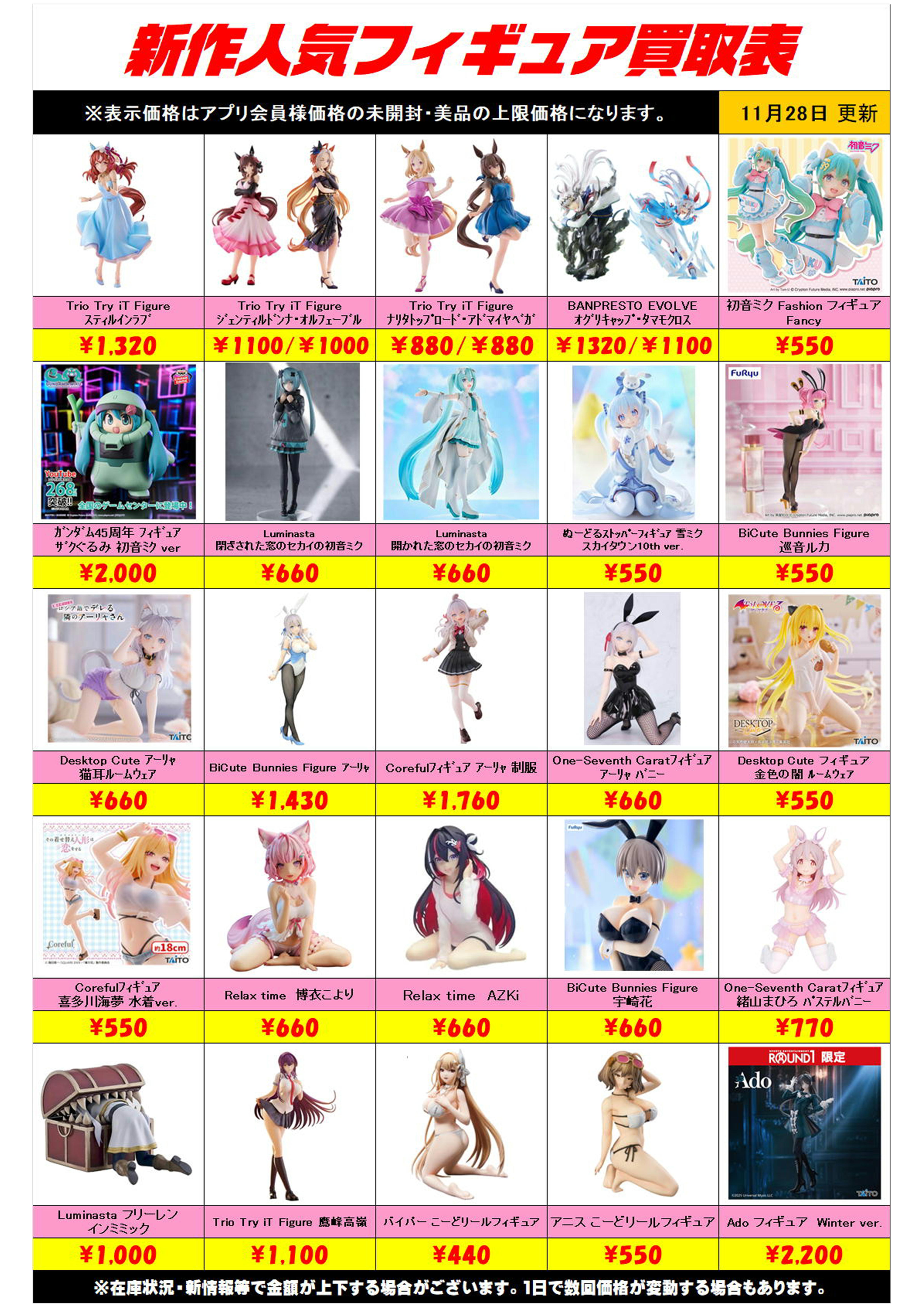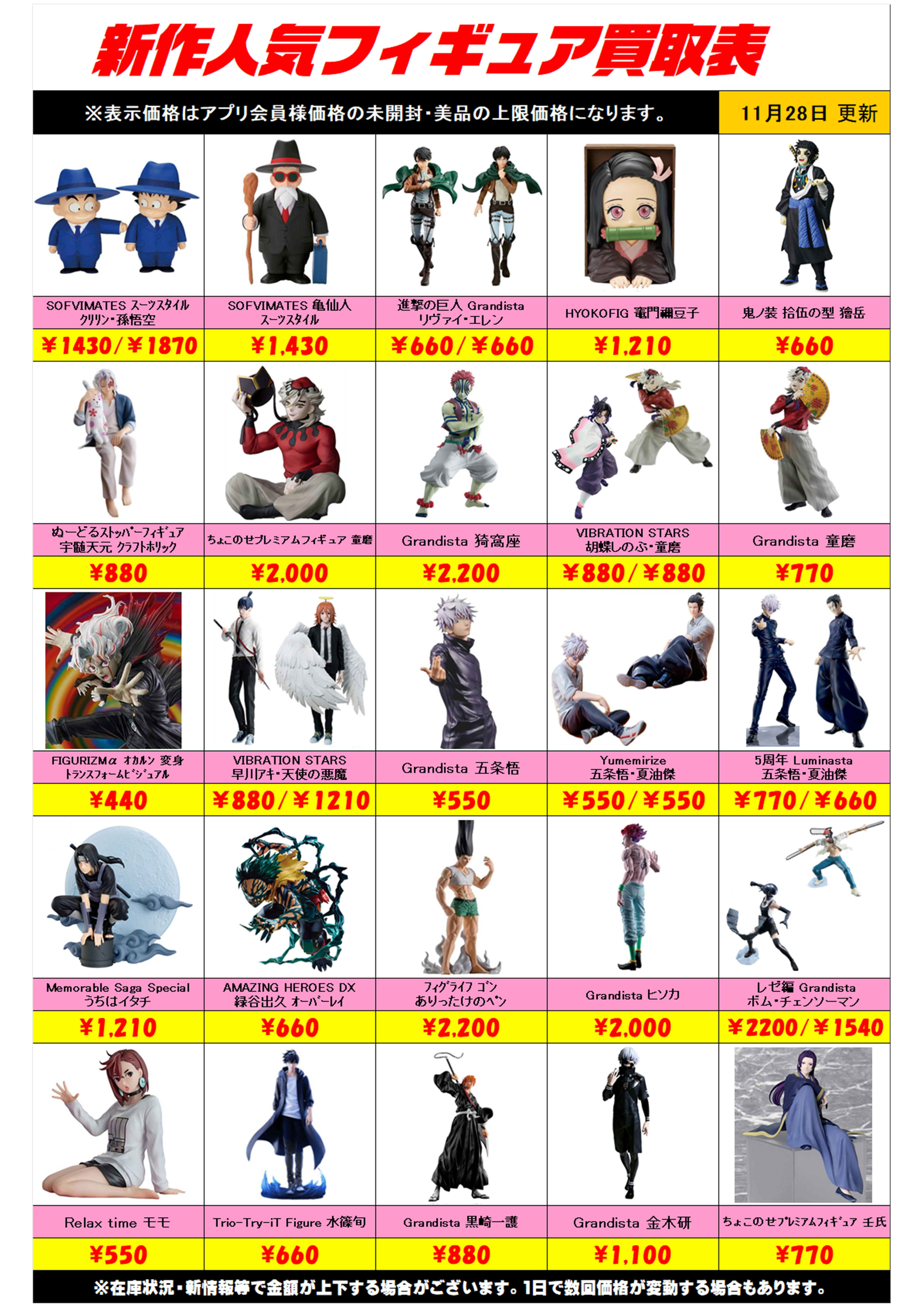 新作プライズフィギュア買取リスト更新しました! 11/28~ プラスアップキャンペーンも実施中です!