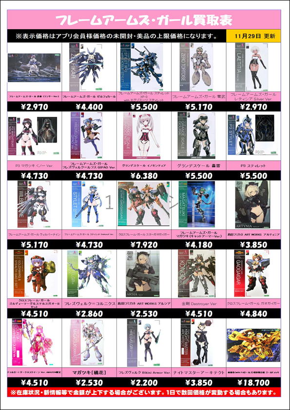 美少女プラモデル『フレームアームズガール』買取リスト更新しました! 11/29~