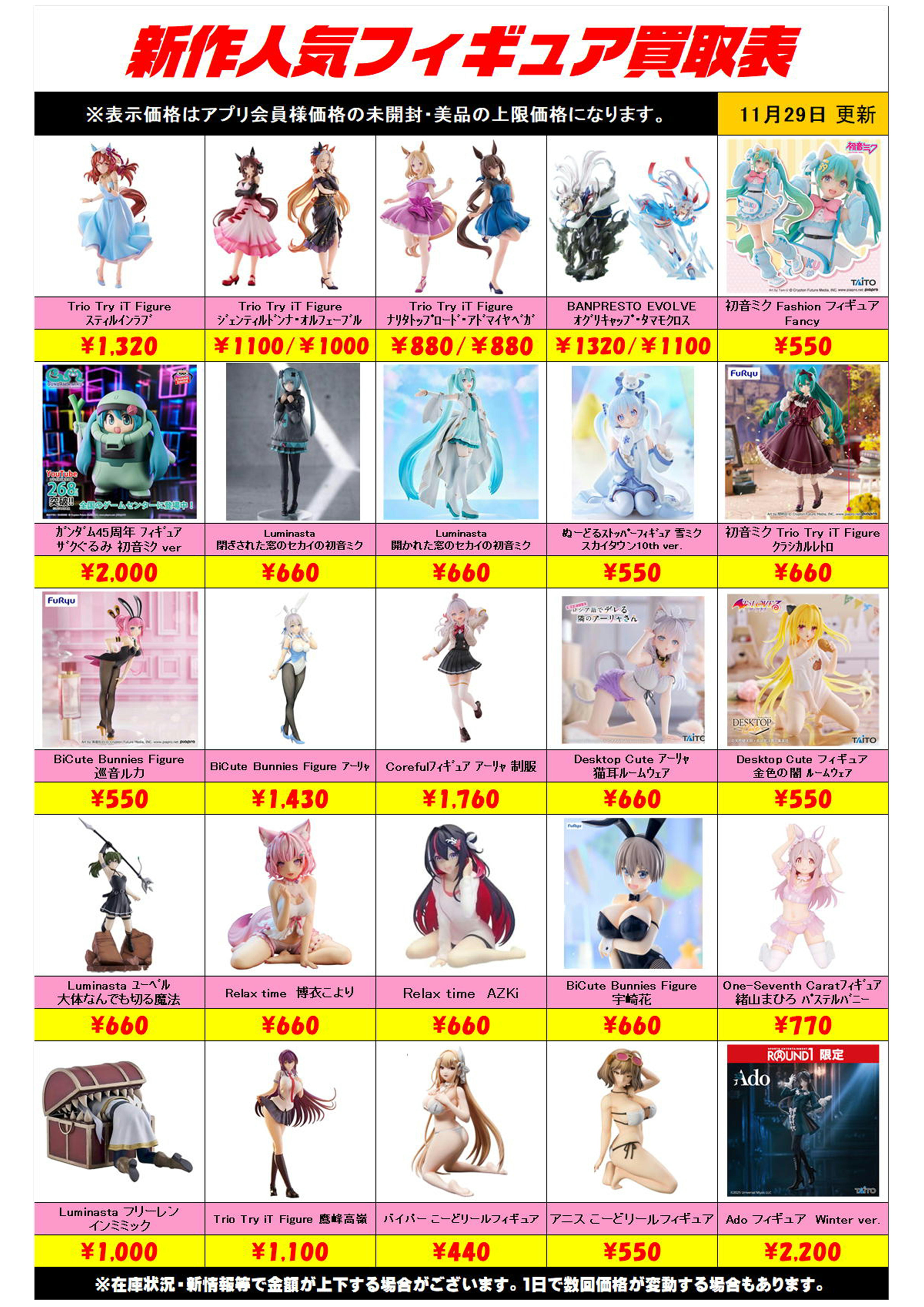 新作プライズフィギュア買取リスト更新しました! 11/29~