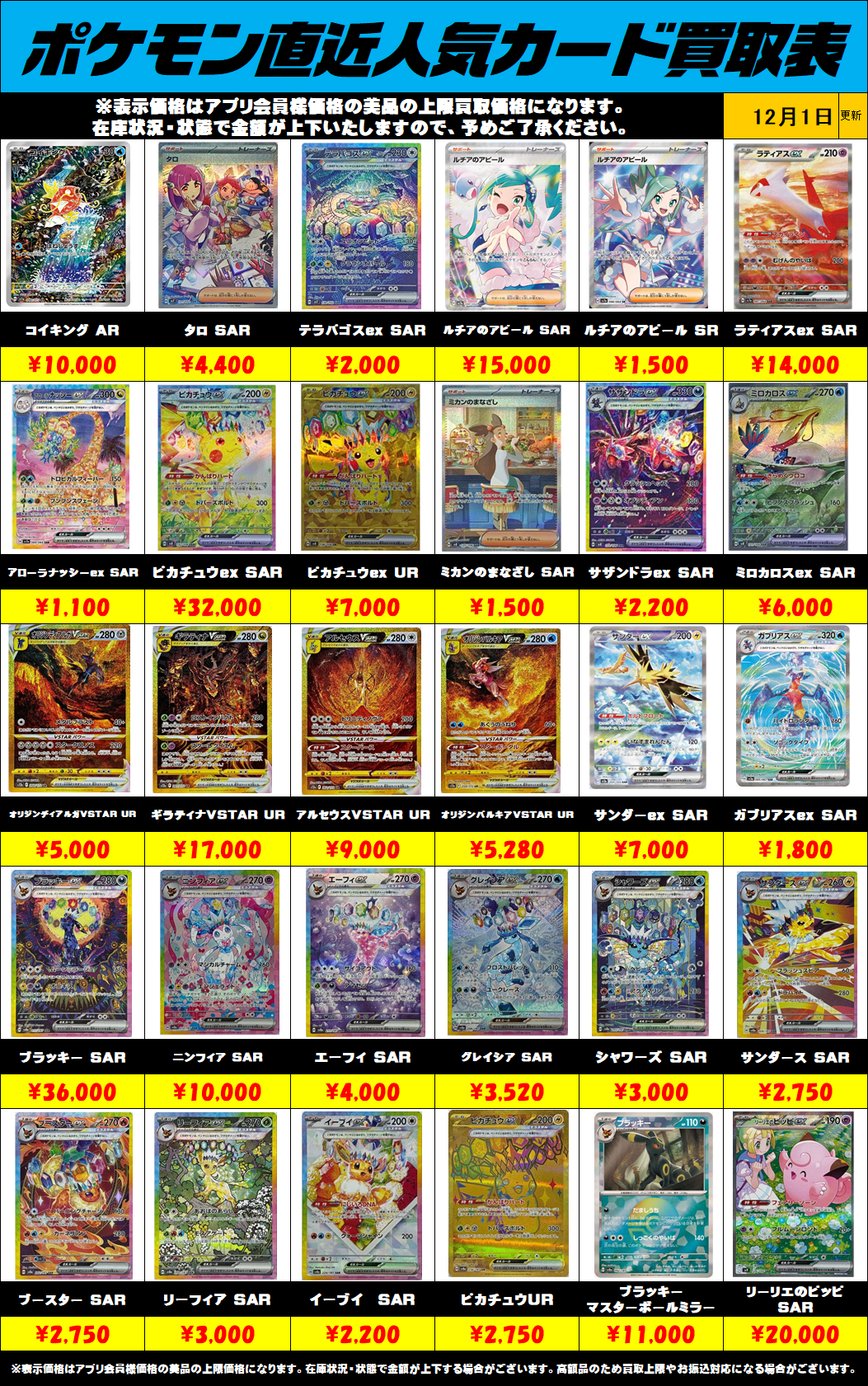 リザードンex SAR ¥28000買取 ポピー SAR ¥4000買取 オモダカ SAR ¥2500買取 リザードンex UR ¥6600買取 ポピー SR ¥1000買取 オモダカ SR ¥440 …