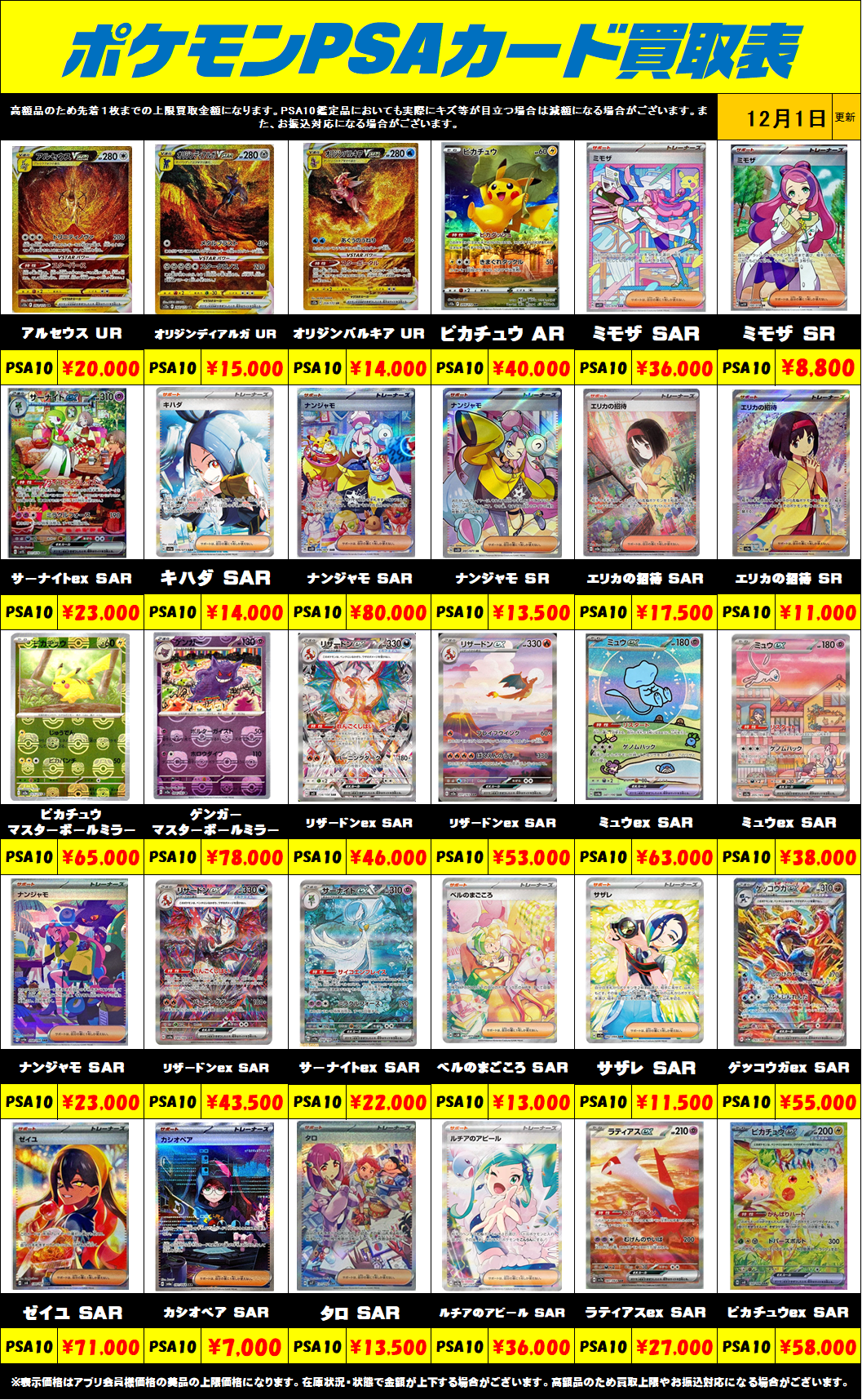 ※表示価格はアプリ会員様・店頭買取の美品の上限価格になります。 相場の変動が激しい為、在庫状況・状態・相場等で金額が予告なく大きく変動する場合がございます。PSAは、おひとり様最大で1日20万円までのお買取りになります