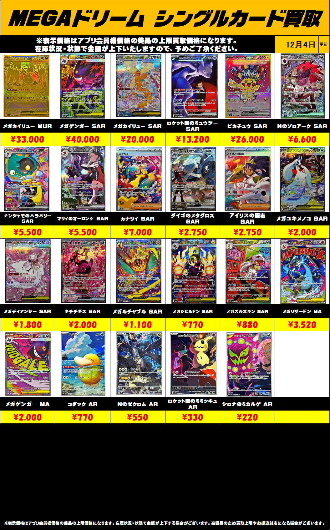 未開封・美品・メーカーテープ付きの店頭・アプリ会員様の買取価格を表示しております。 予告なく在庫により金額が上下する場合と買取上限や、お振込対応になる場合がございます。 BOXの状態によりお買取り出来 …