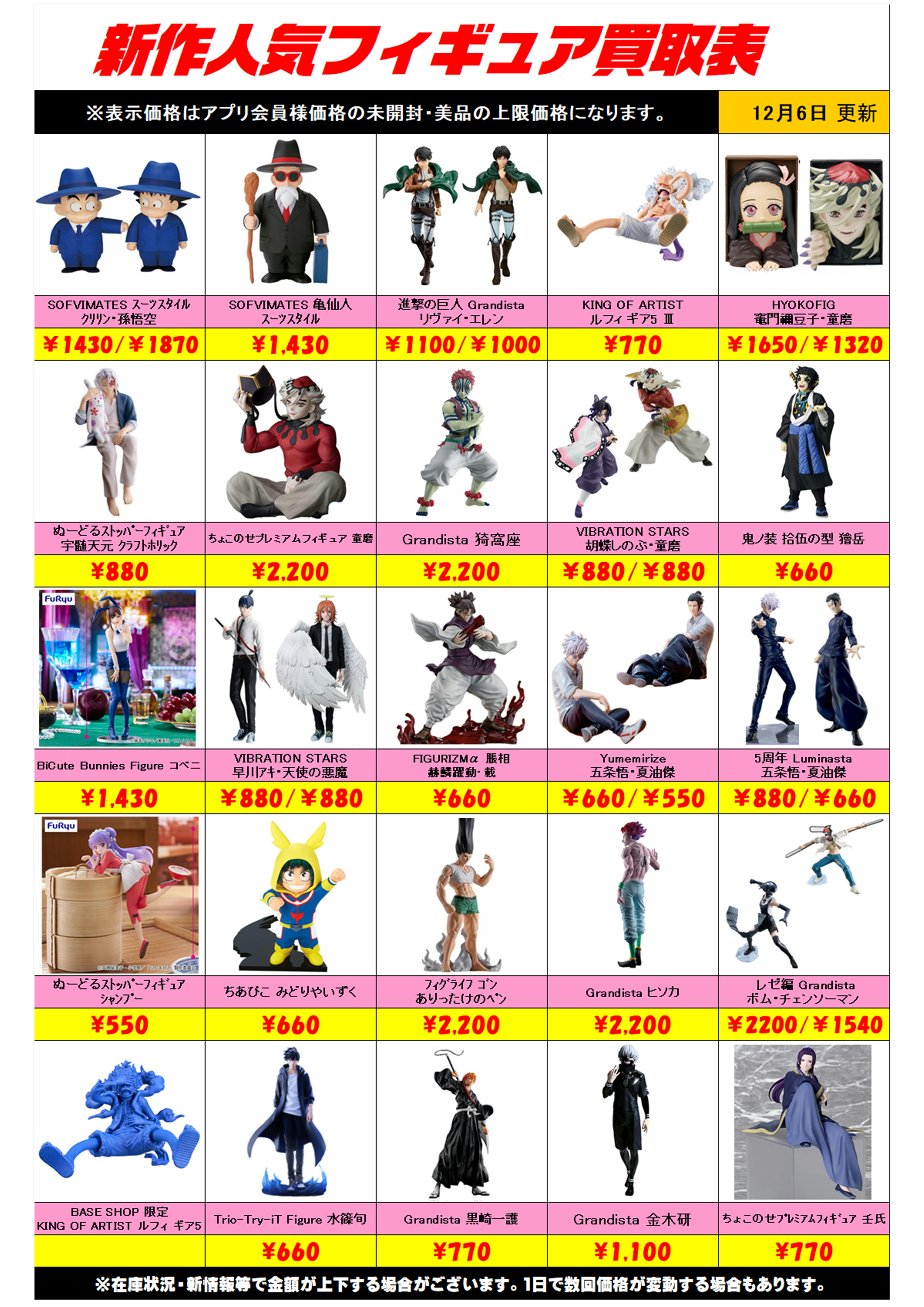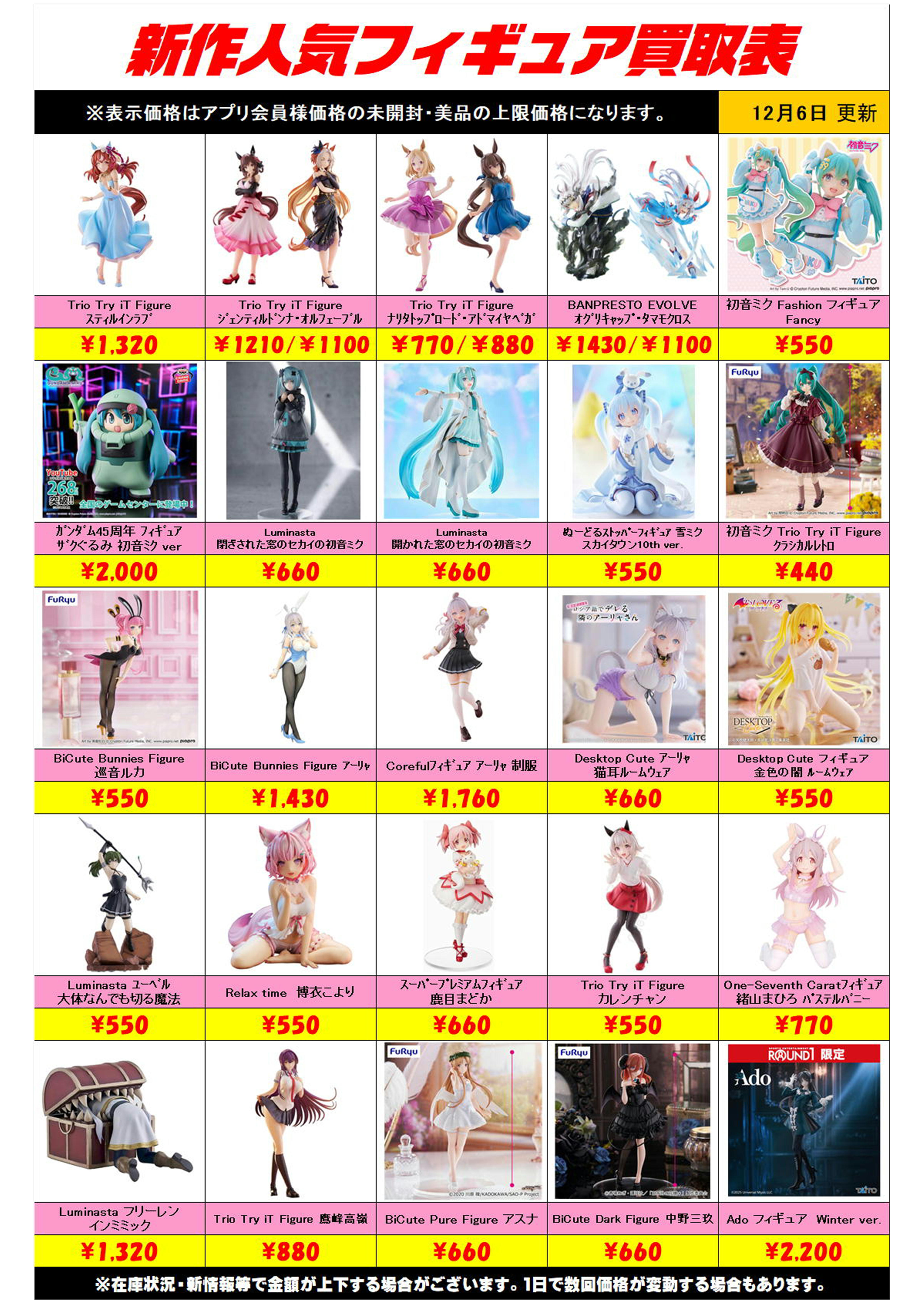 新作プライズフィギュア買取リスト更新しました! 12/6~ プラスアップキャンペーンも実施中です!
