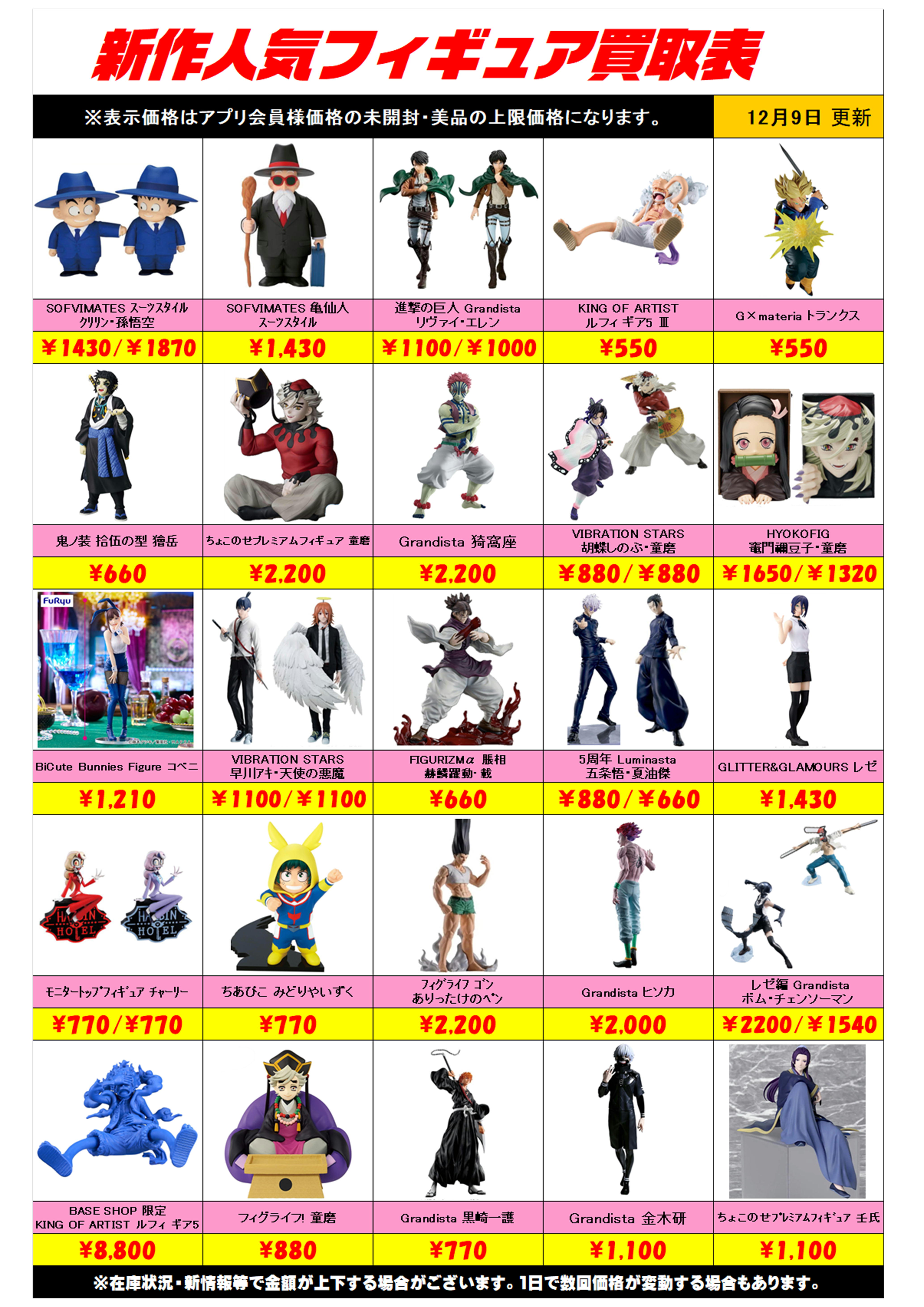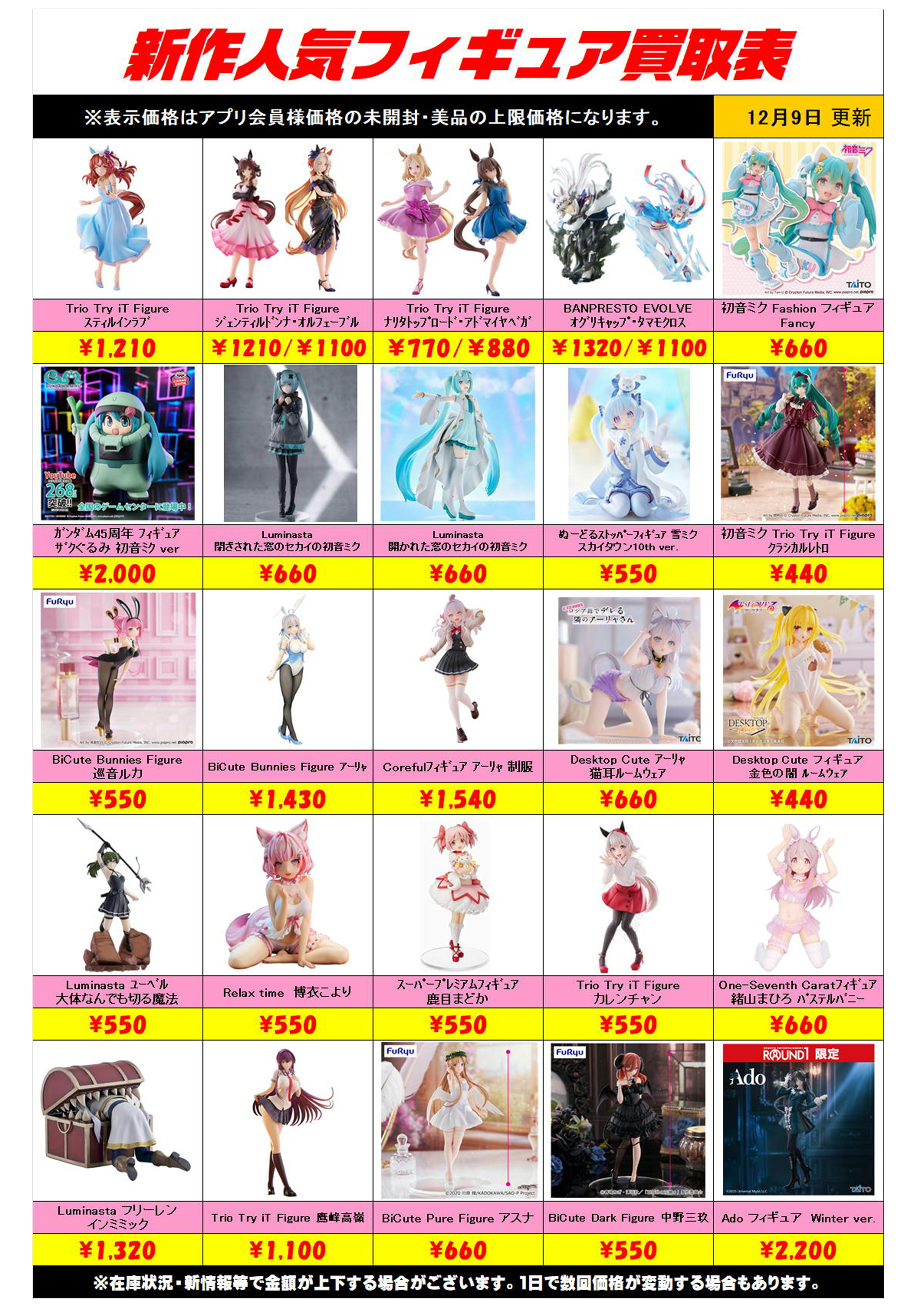 新作プライズフィギュア買取リスト更新しました! 12/9~ プラスアップキャンペーンも実施中です!