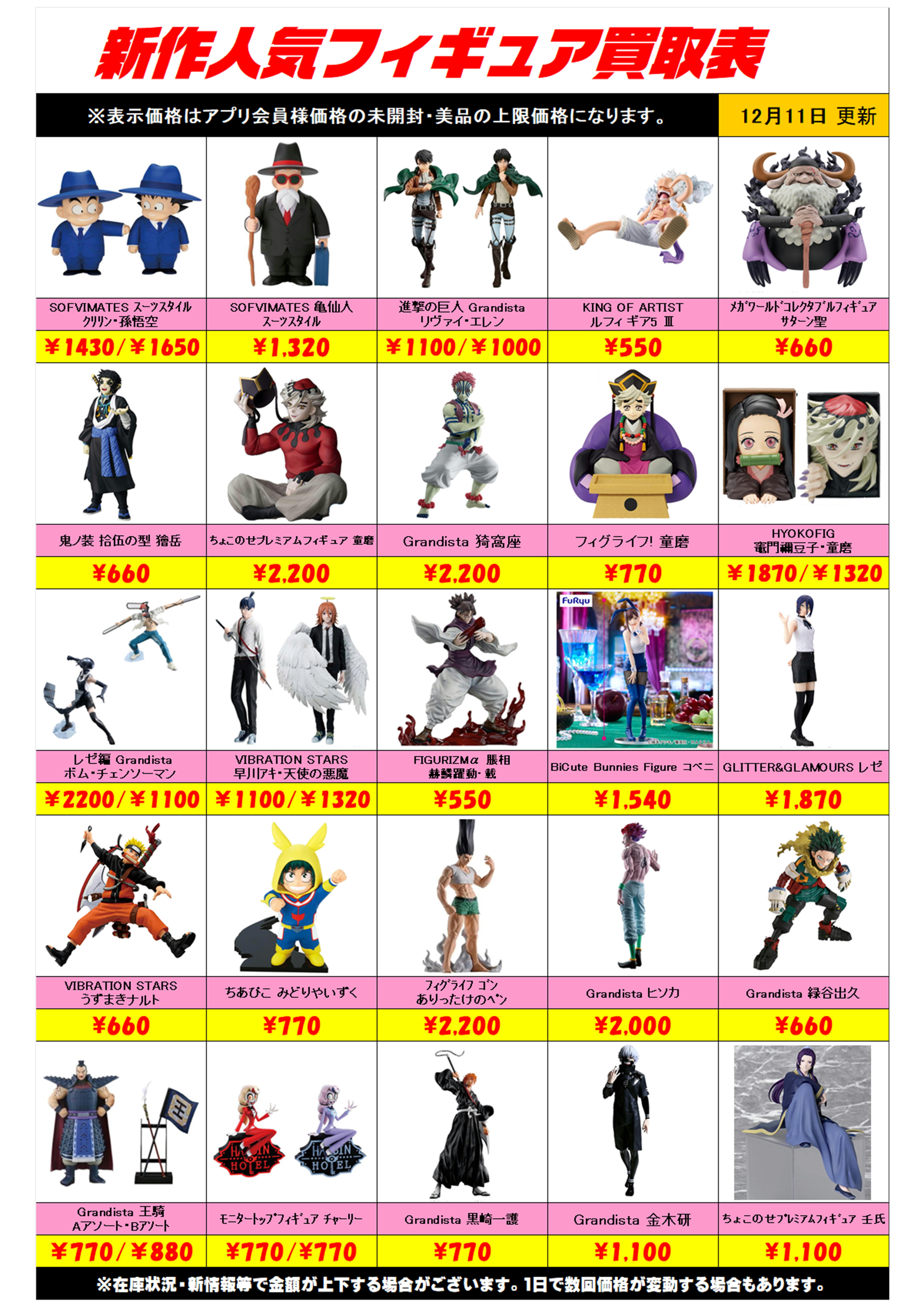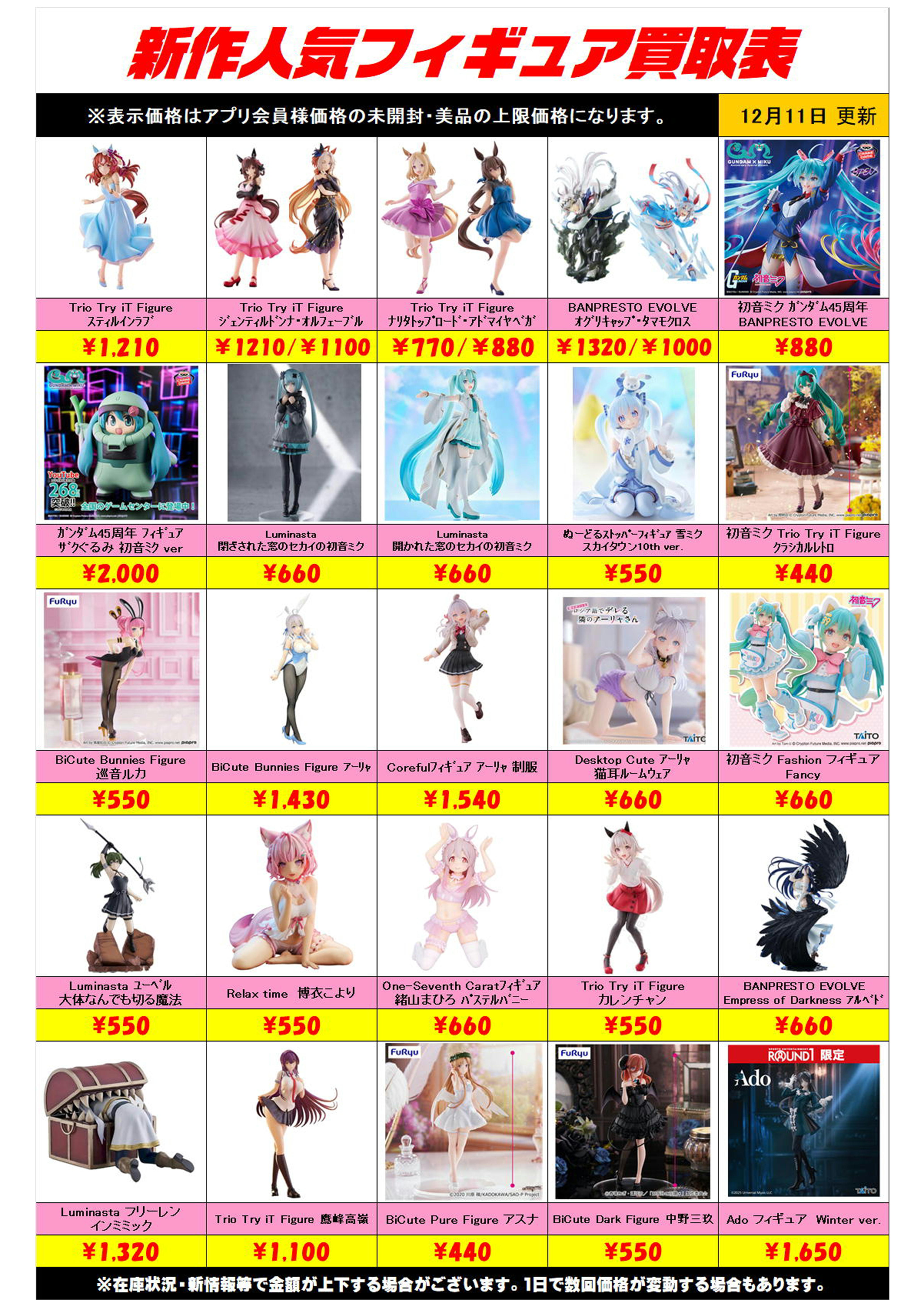 新作プライズフィギュア買取リスト更新しました! 12/11~ プラスアップキャンペーンも実施中です!