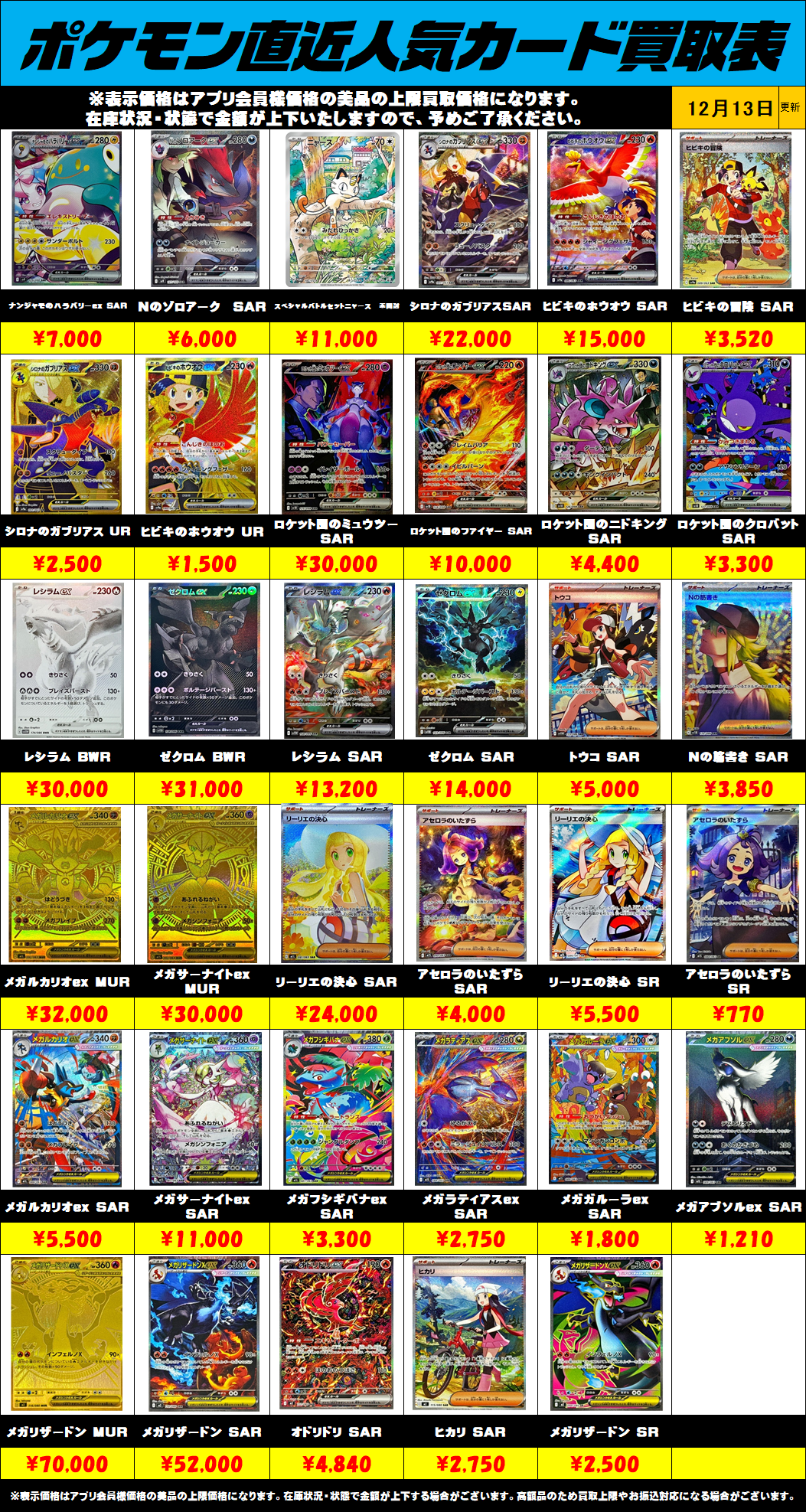 カイ SAR ¥17000買取 ギラティナVSTAR UR SA ¥10000買取 アルセウスVSTAR UR SA ¥6500買取 カミツレのきらめき SR ¥16500買取 ヒスイの仲間たち SR …