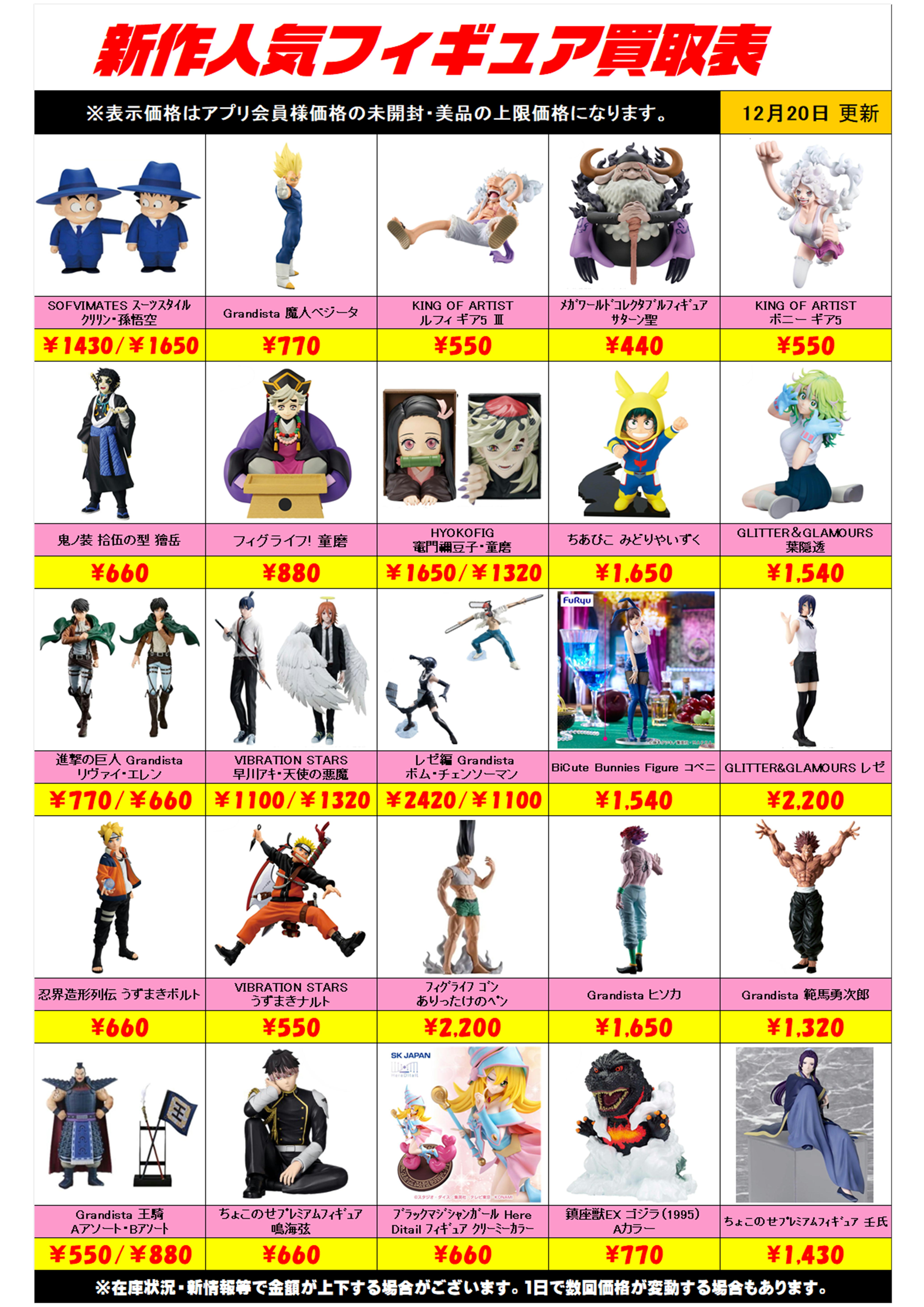 新作プライズフィギュア買取リスト更新しました! 12/20~ プラスアップキャンペーンも実施中です!