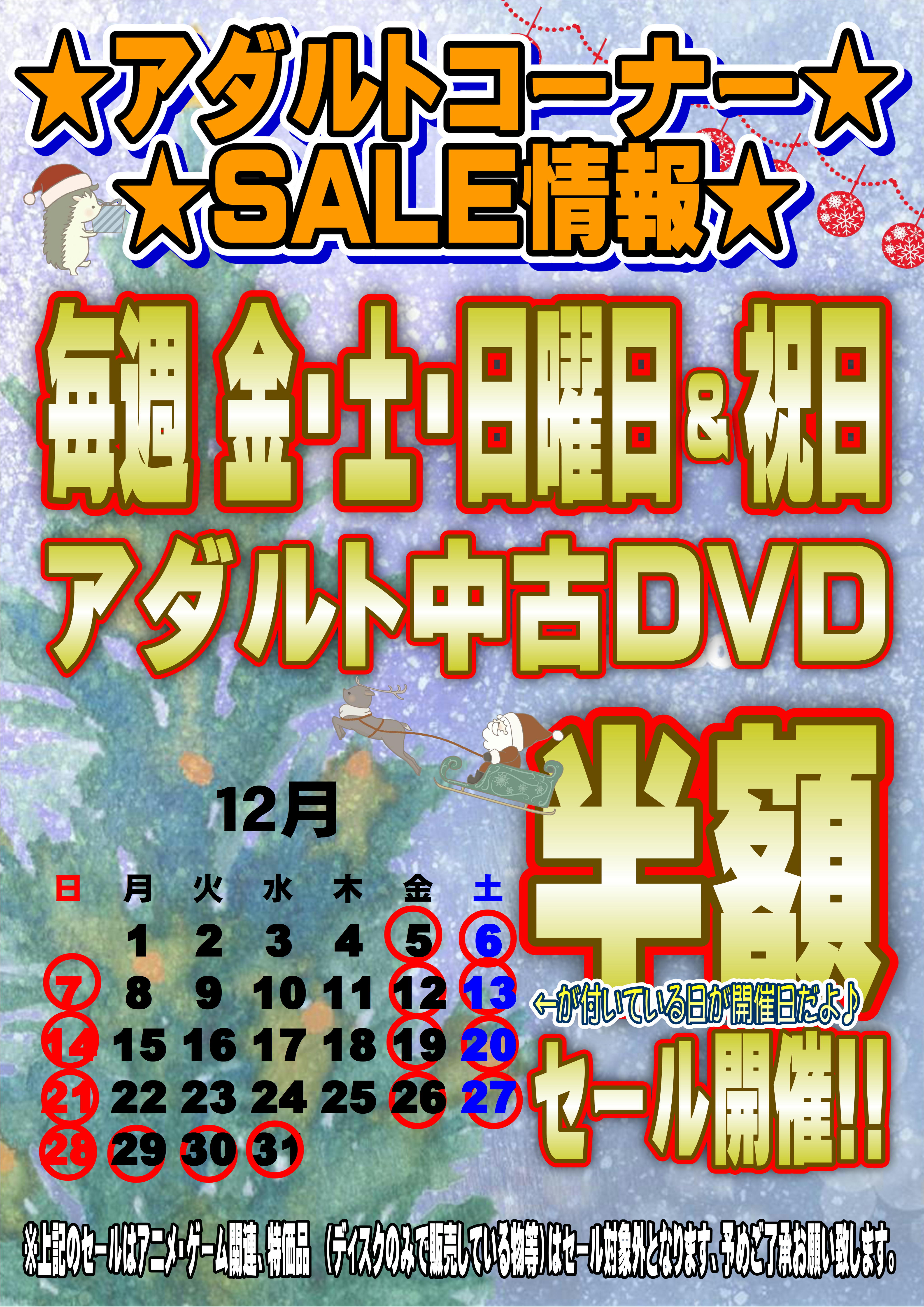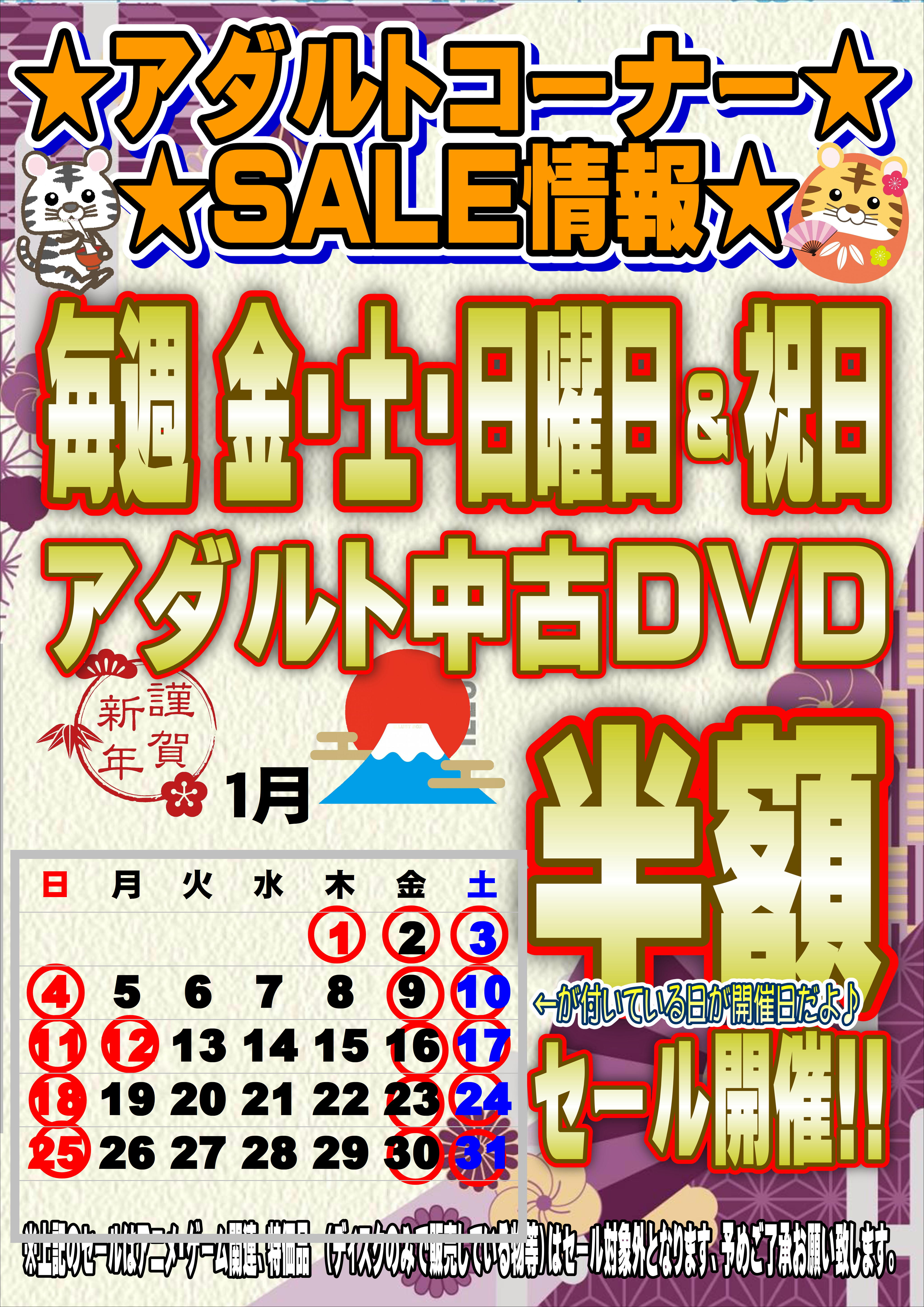 金・土・日の3日間、欲しかったあのDVDがいつもの半額で購入できるチャンスです!!