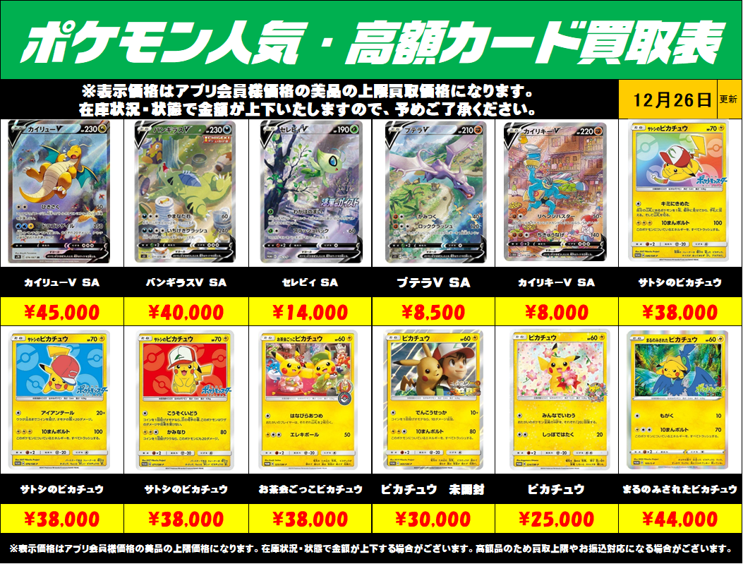未開封・美品・シュリンク付きの店頭・アプリ会員様の買取価格を表示しております。 在庫により予告なく金額が上下する場合と買取上限や、お振込対応になる場合がございます。 BOX状態により買取をお断りする場 …