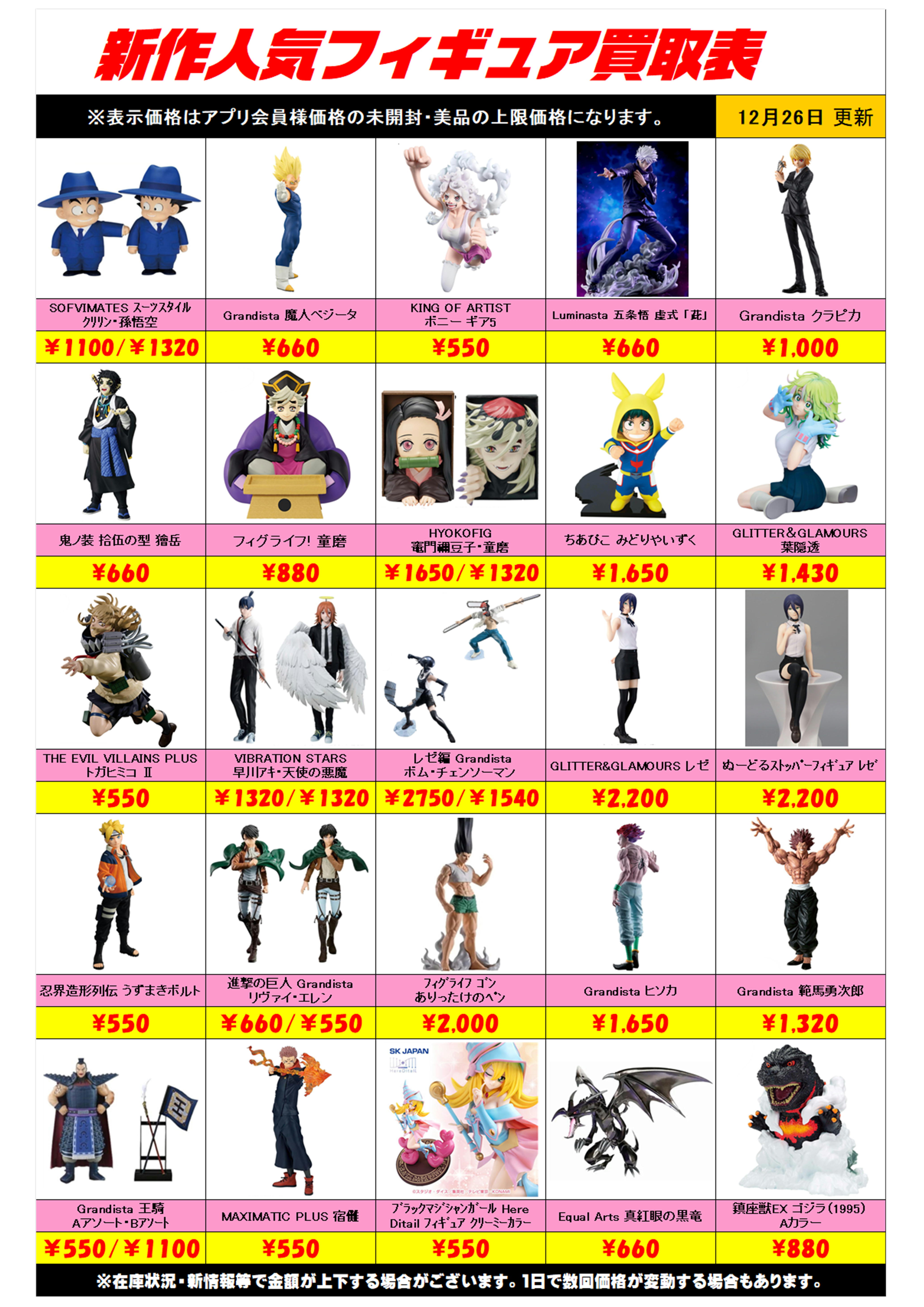 新作プライズフィギュア買取リスト更新しました! 12/26 ~ プラスアップキャンペーンも実施中です!