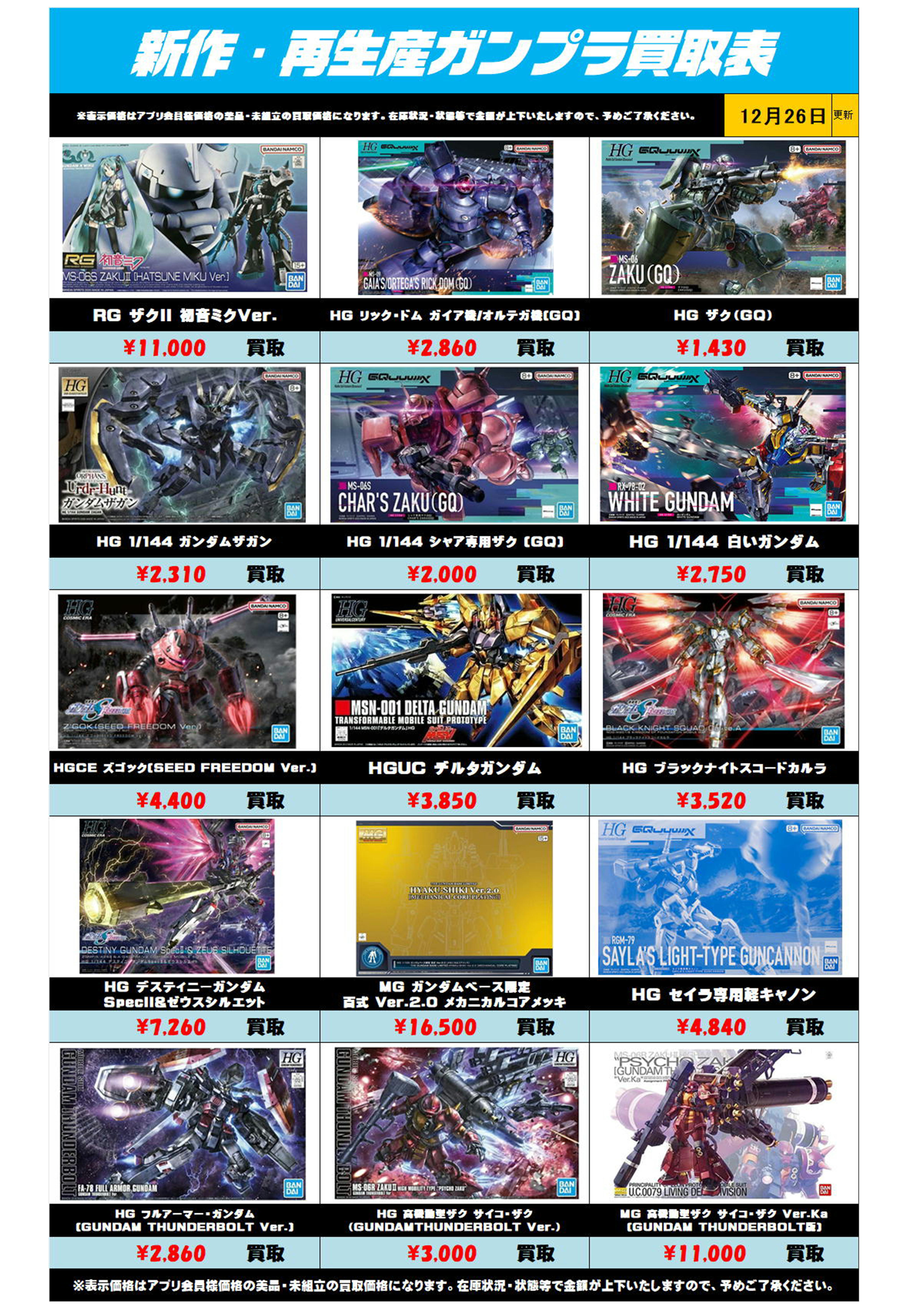 新作・再販ガンプラ買取リスト更新しました! 12/26~ プラスアップキャンペーンも実施中です!