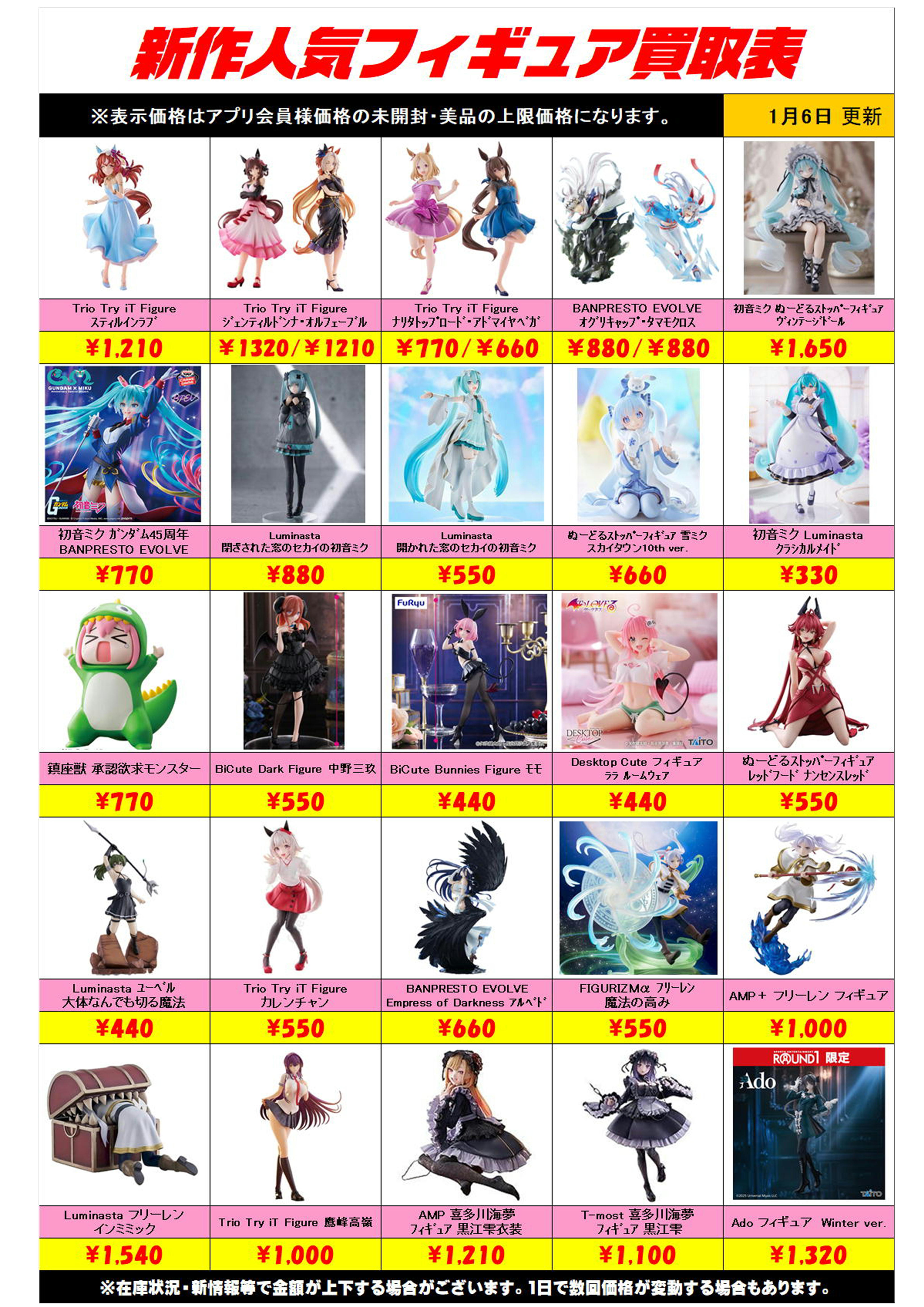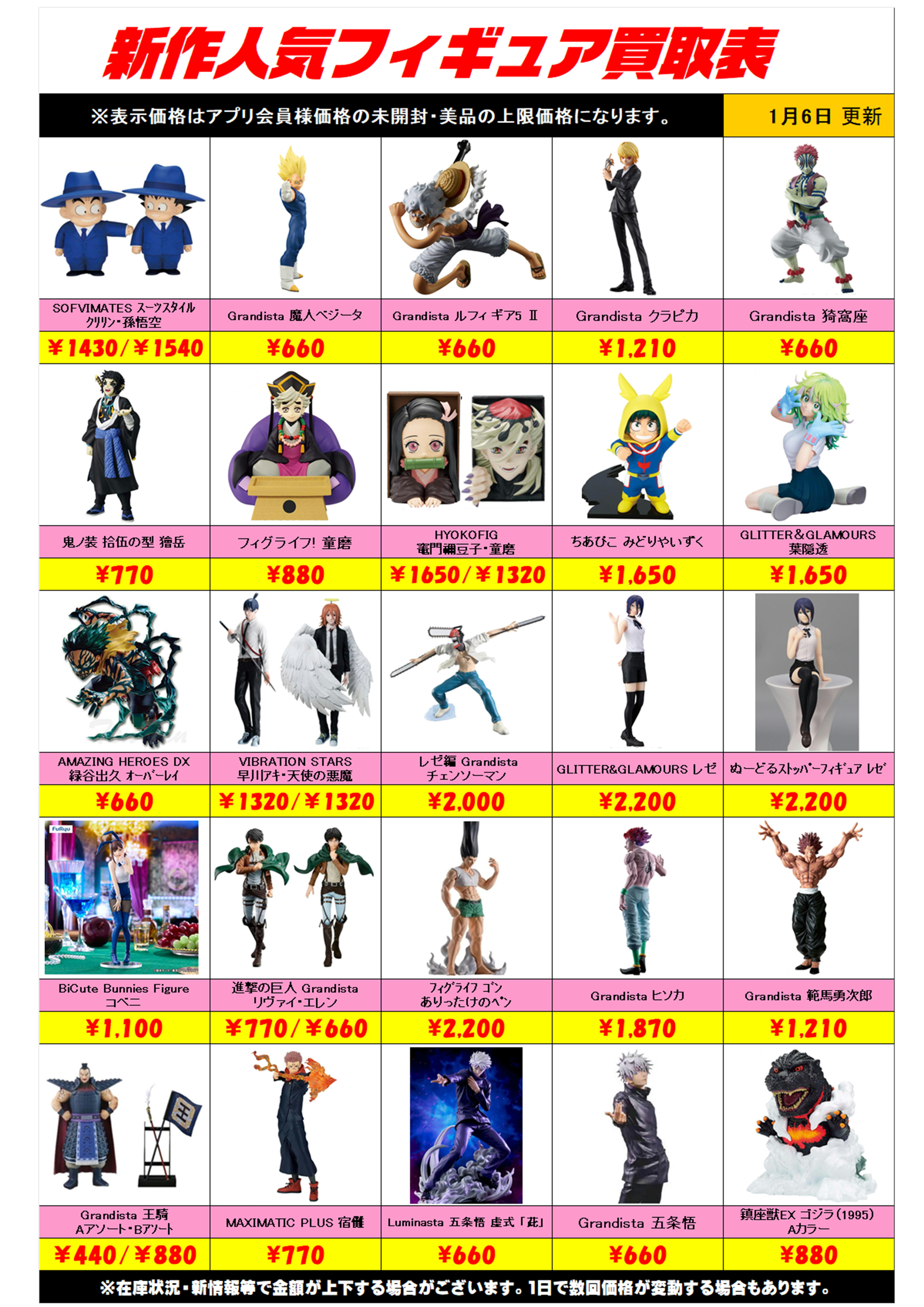 新作プライズフィギュア買取リスト更新しました! 1/6~ プラスアップキャンペーンも実施中です!