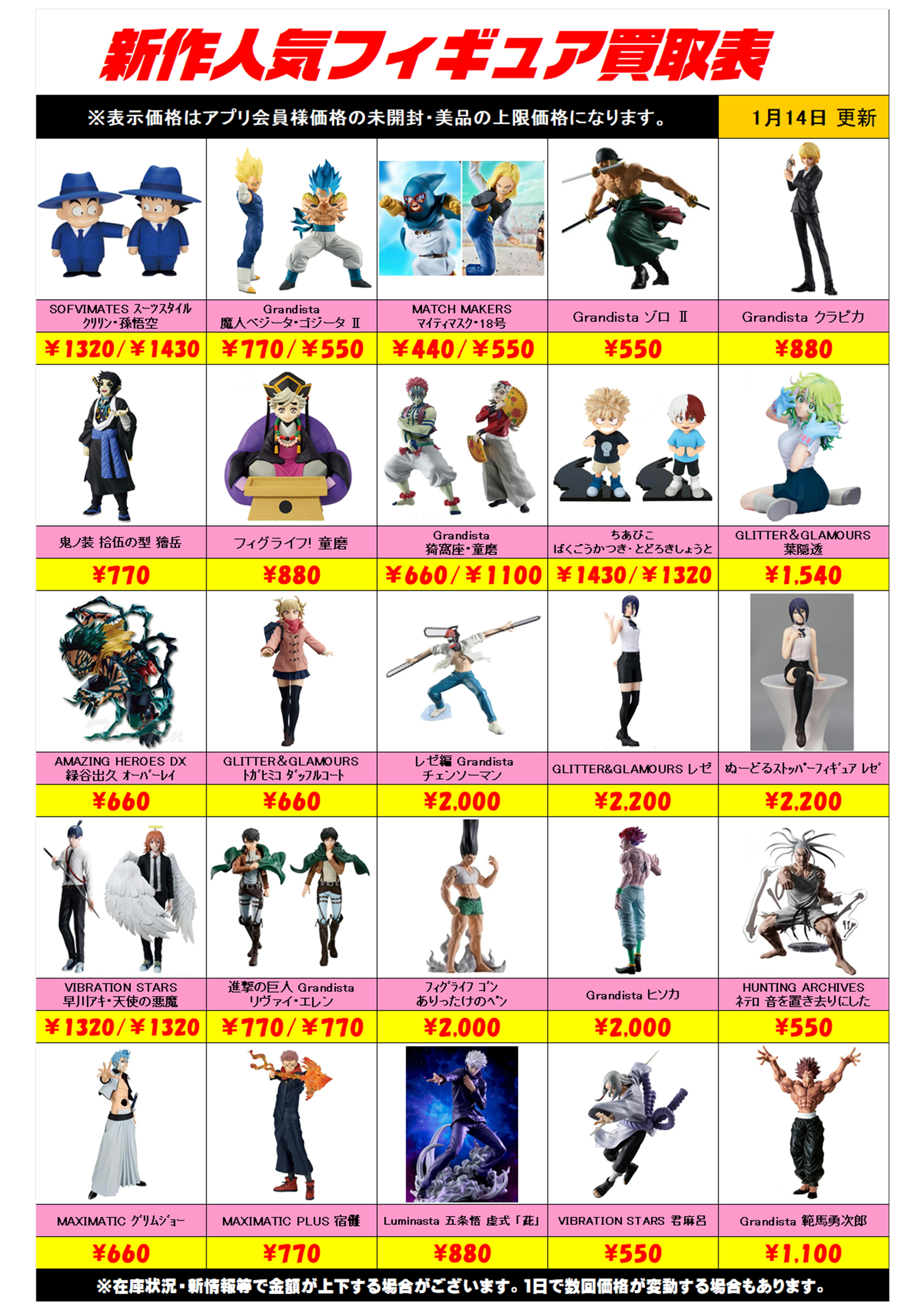 新作プライズフィギュア買取リスト更新しました! 1/14~ プラスアップキャンペーンも実施中です!