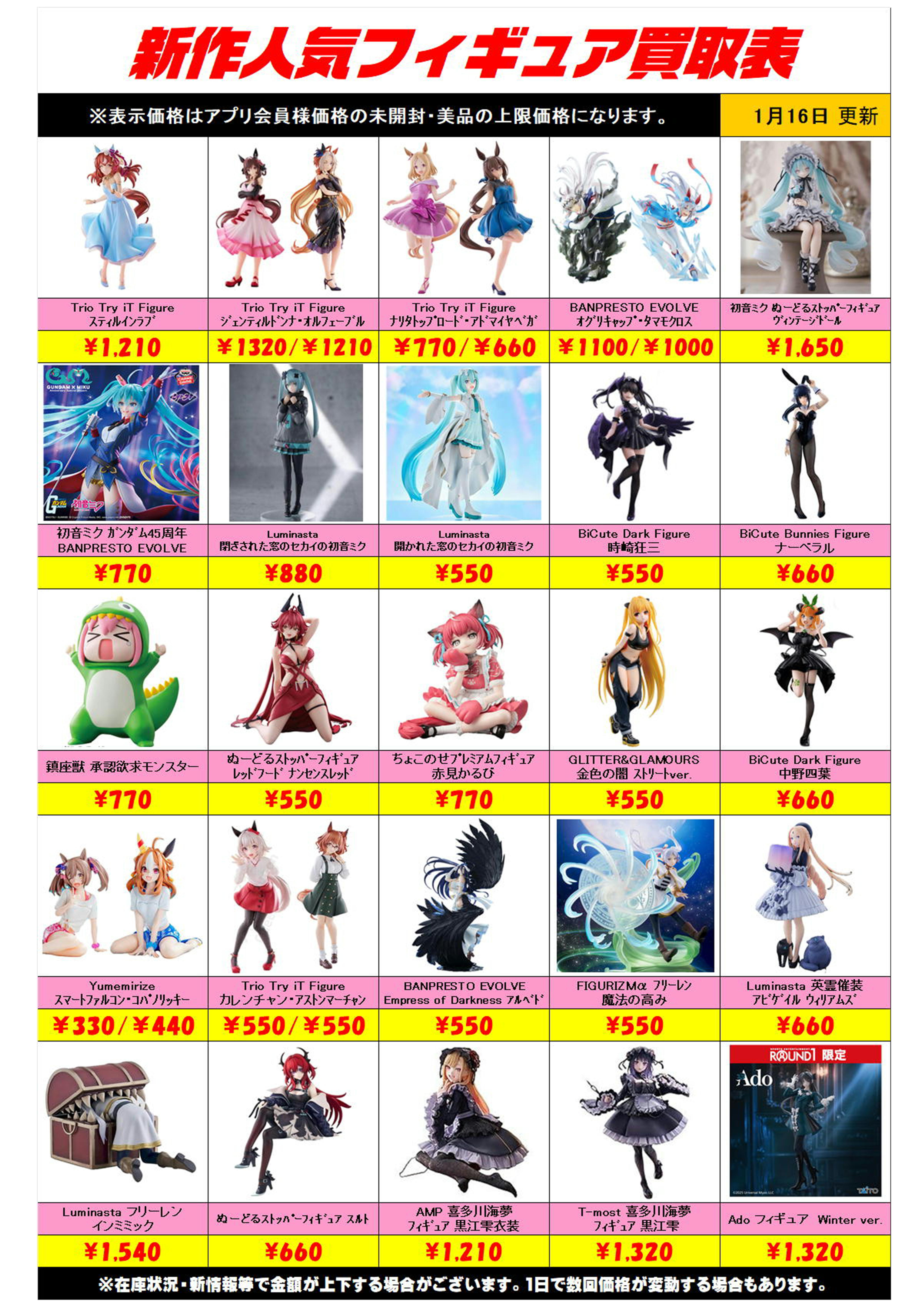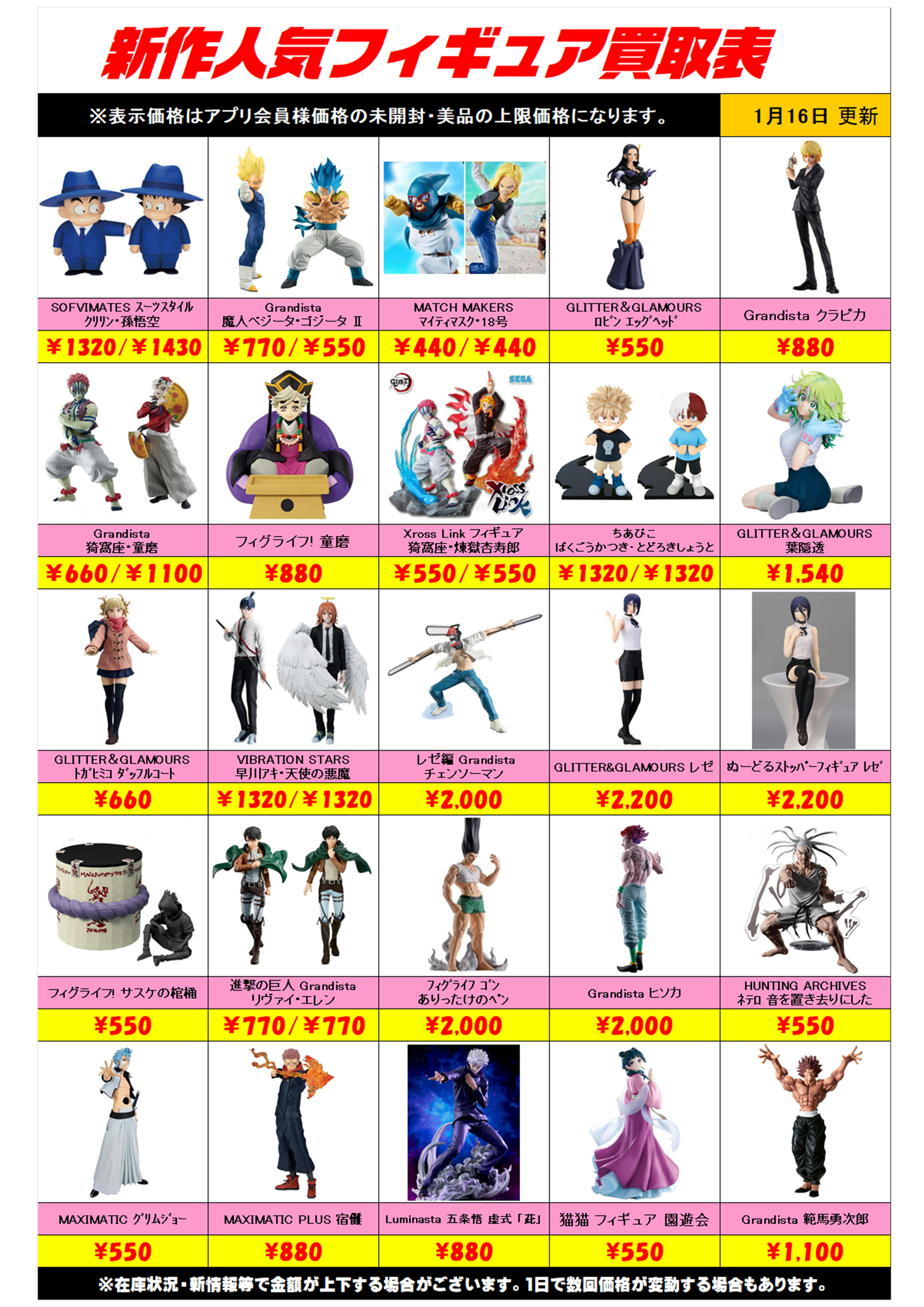 新作プライズフィギュア買取リスト更新しました! 1/16~ プラスアップキャンペーンも実施中です!