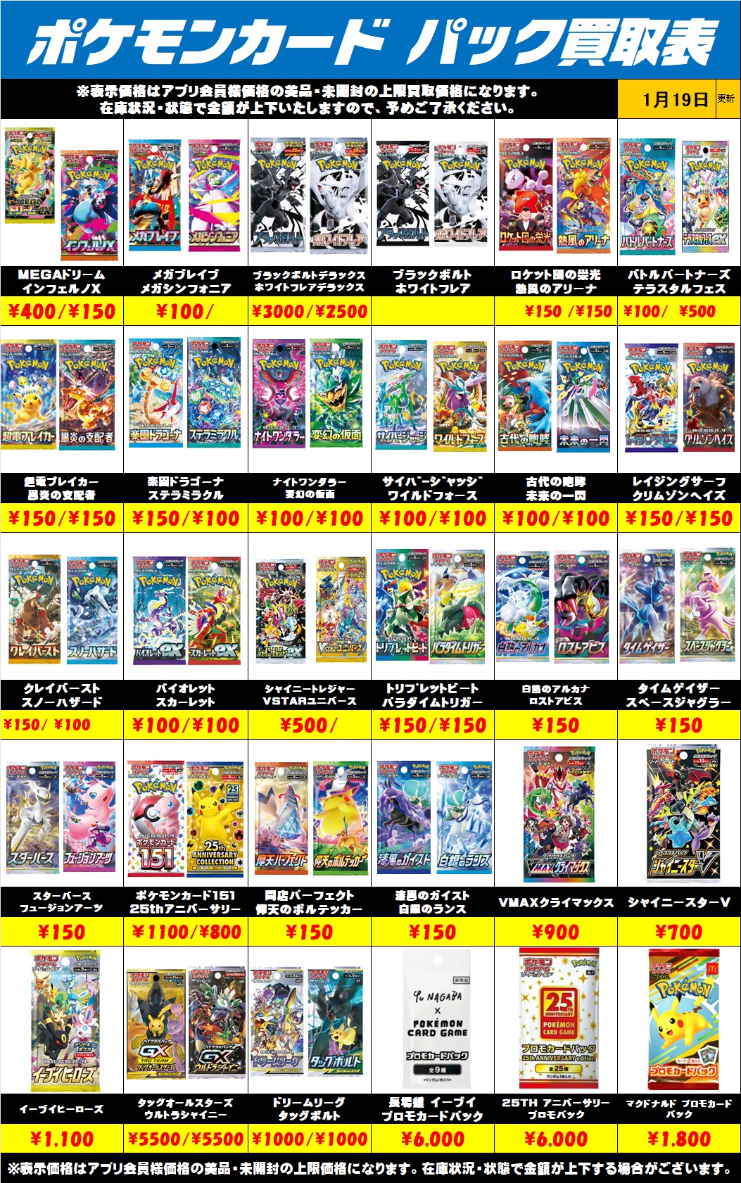 ポケモンカード未開封パック買取リストを更新しました!1/19~