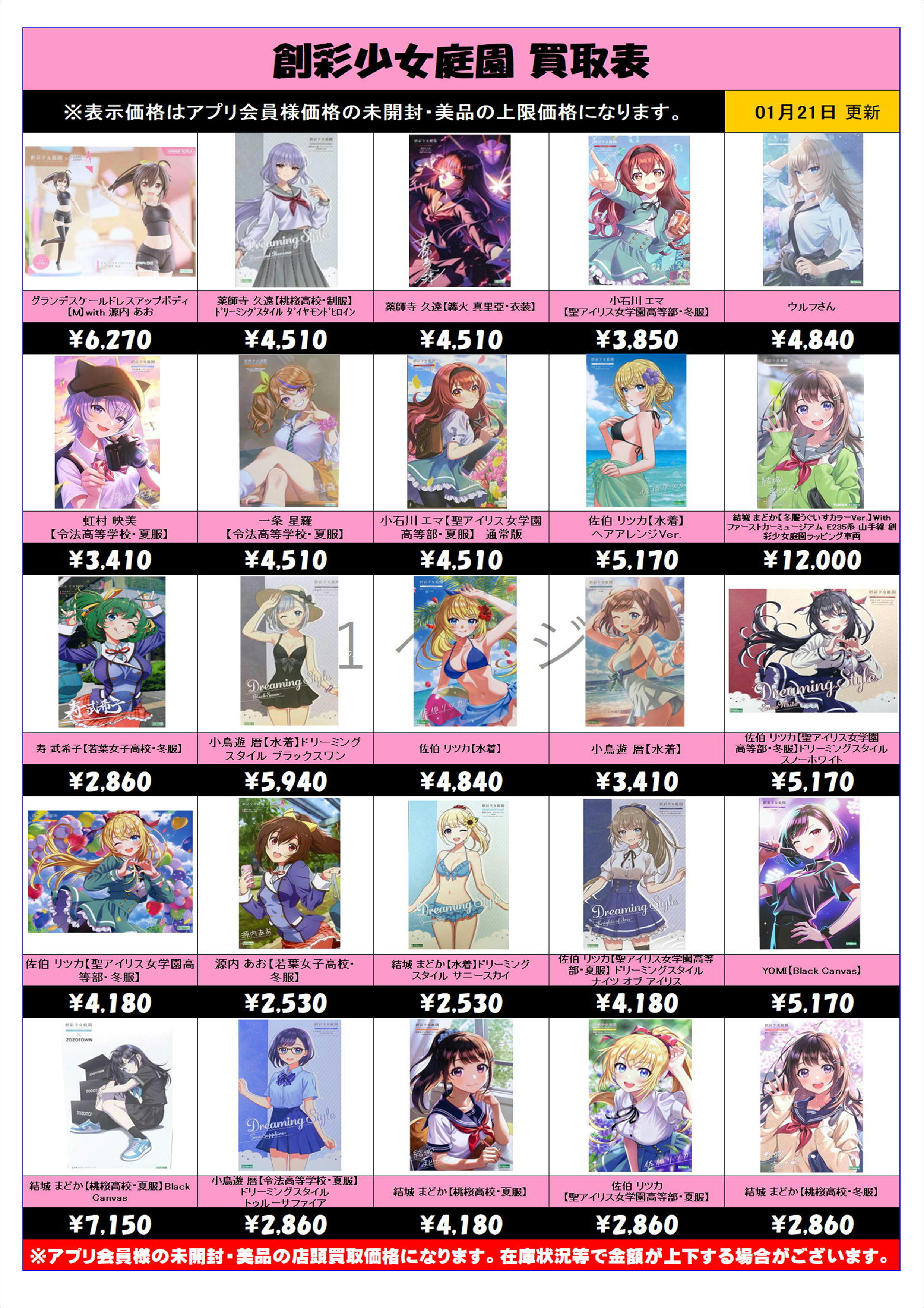 美プラ 【創彩少女庭園】買取リスト更新しました! 1/21~