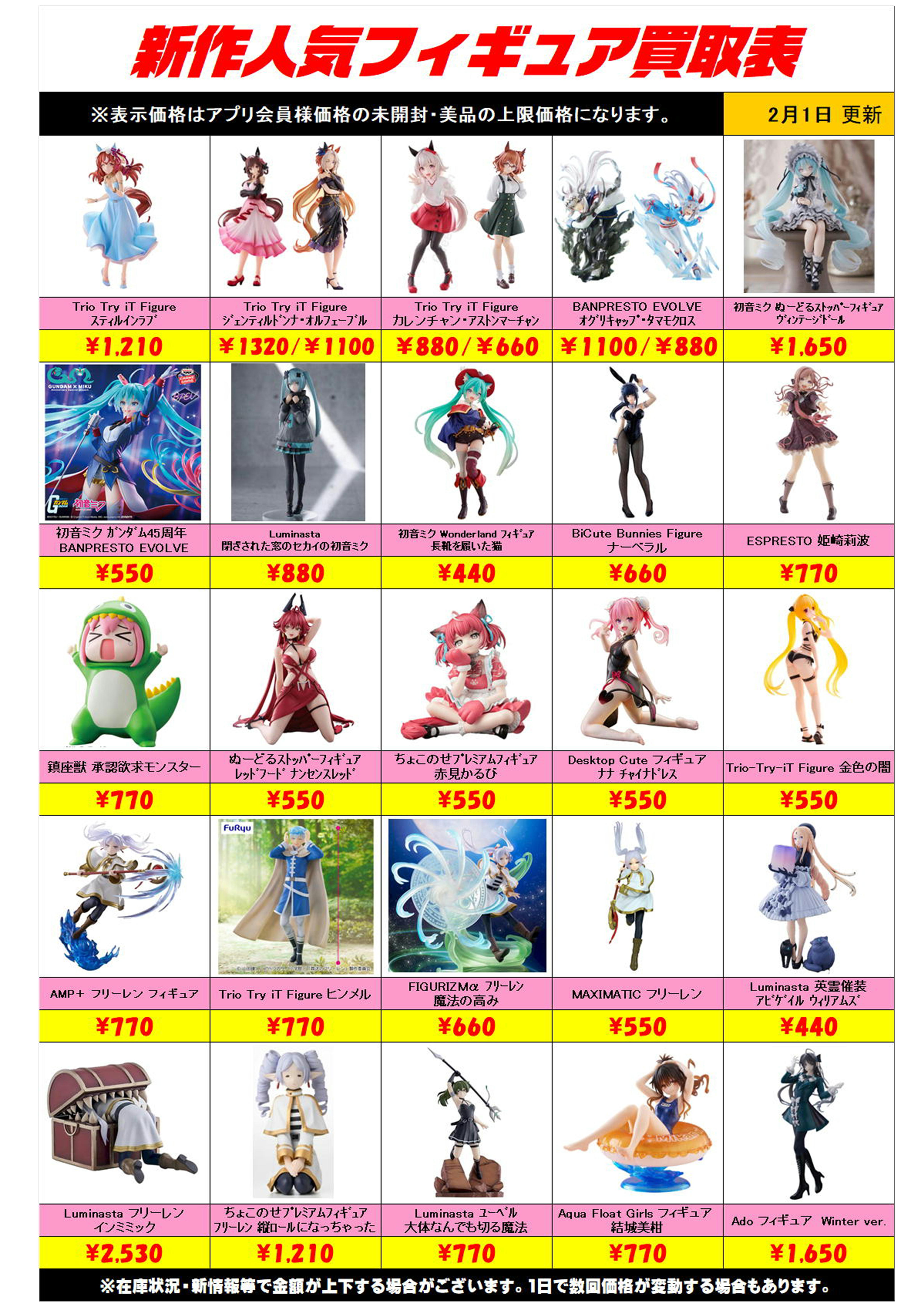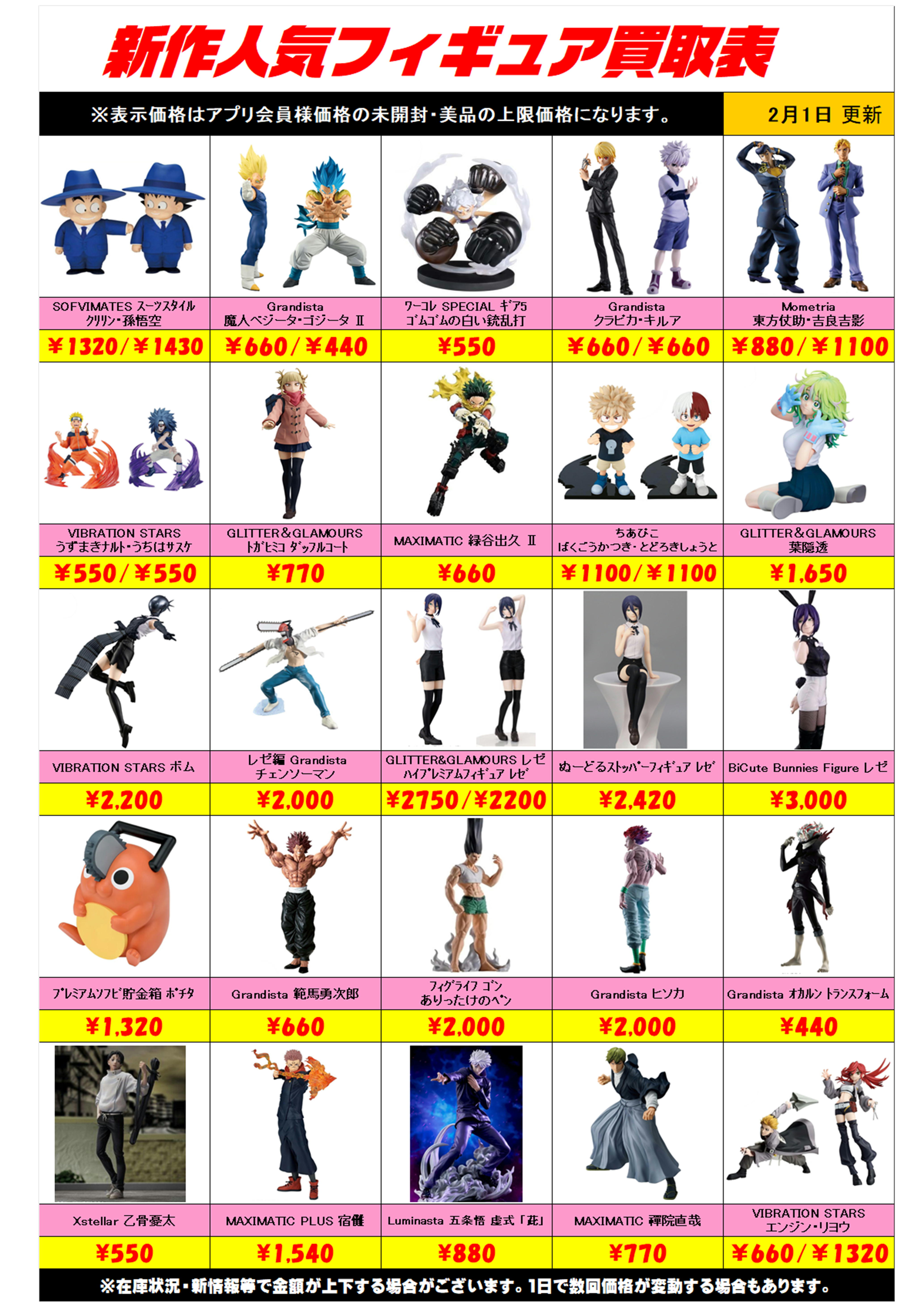 新作プライズフィギュア買取リスト更新しました! 2/1~ プラスアップキャンペーンも実施中です!