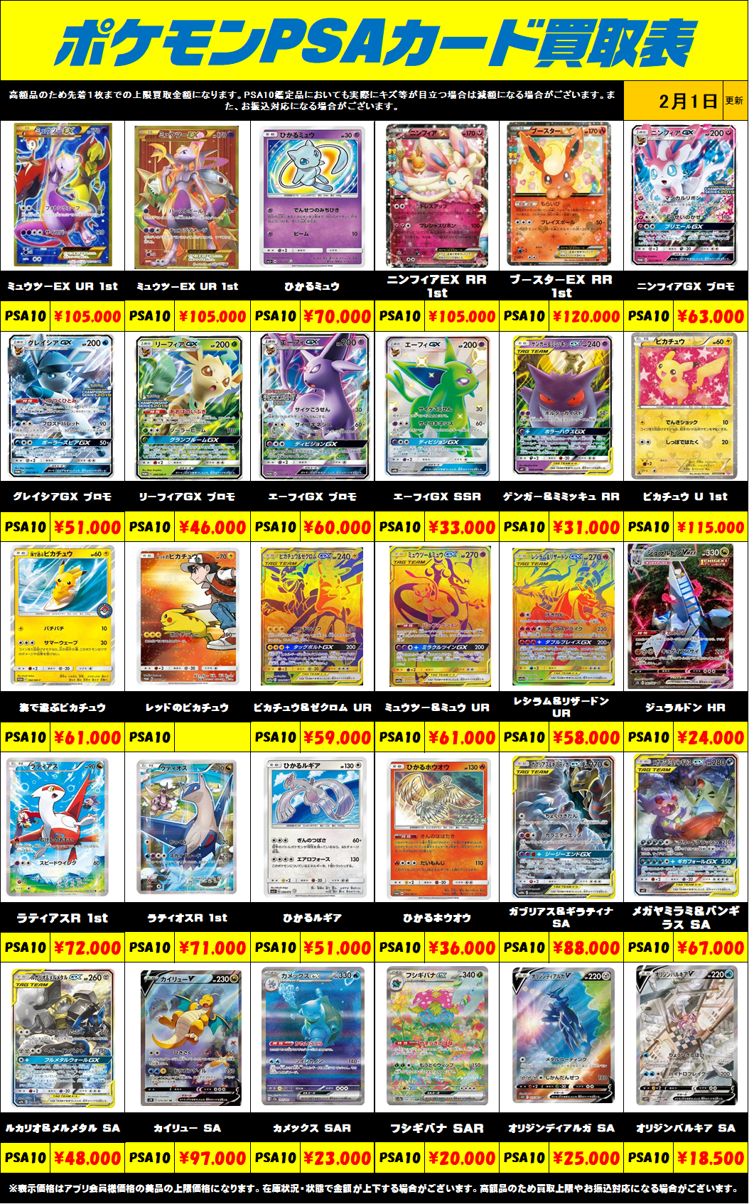 ※表示価格はアプリ会員様・店頭買取の美品の上限価格になります。 相場の変動が激しい為、在庫状況・状態・相場等で金額が予告なく大きく変動する場合がございます。PSAは、おひとり様最大で1日20万円までのお買取りになります。