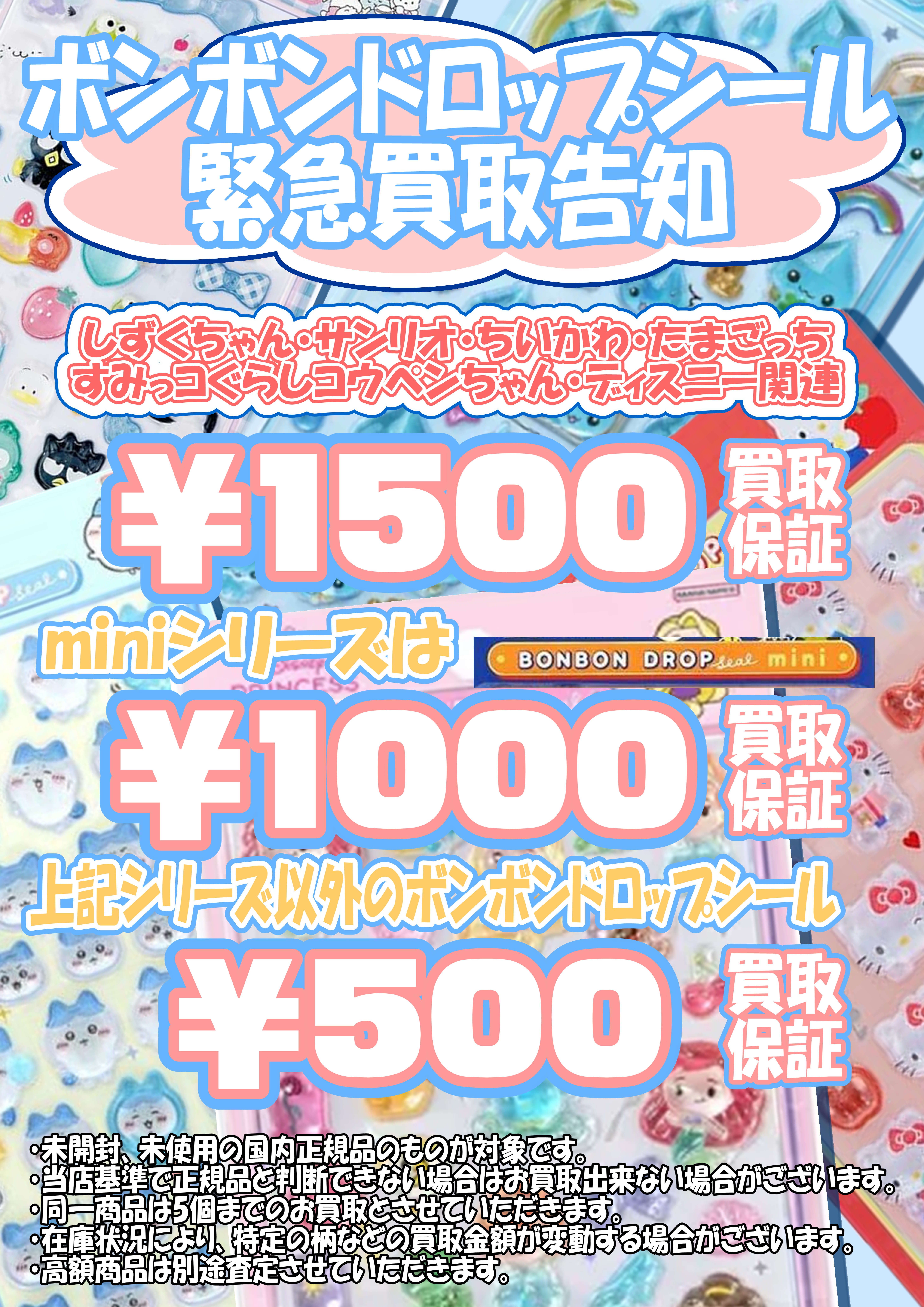 ・在庫状況により、特定の柄などの買取金額が変動する場合がございます。
