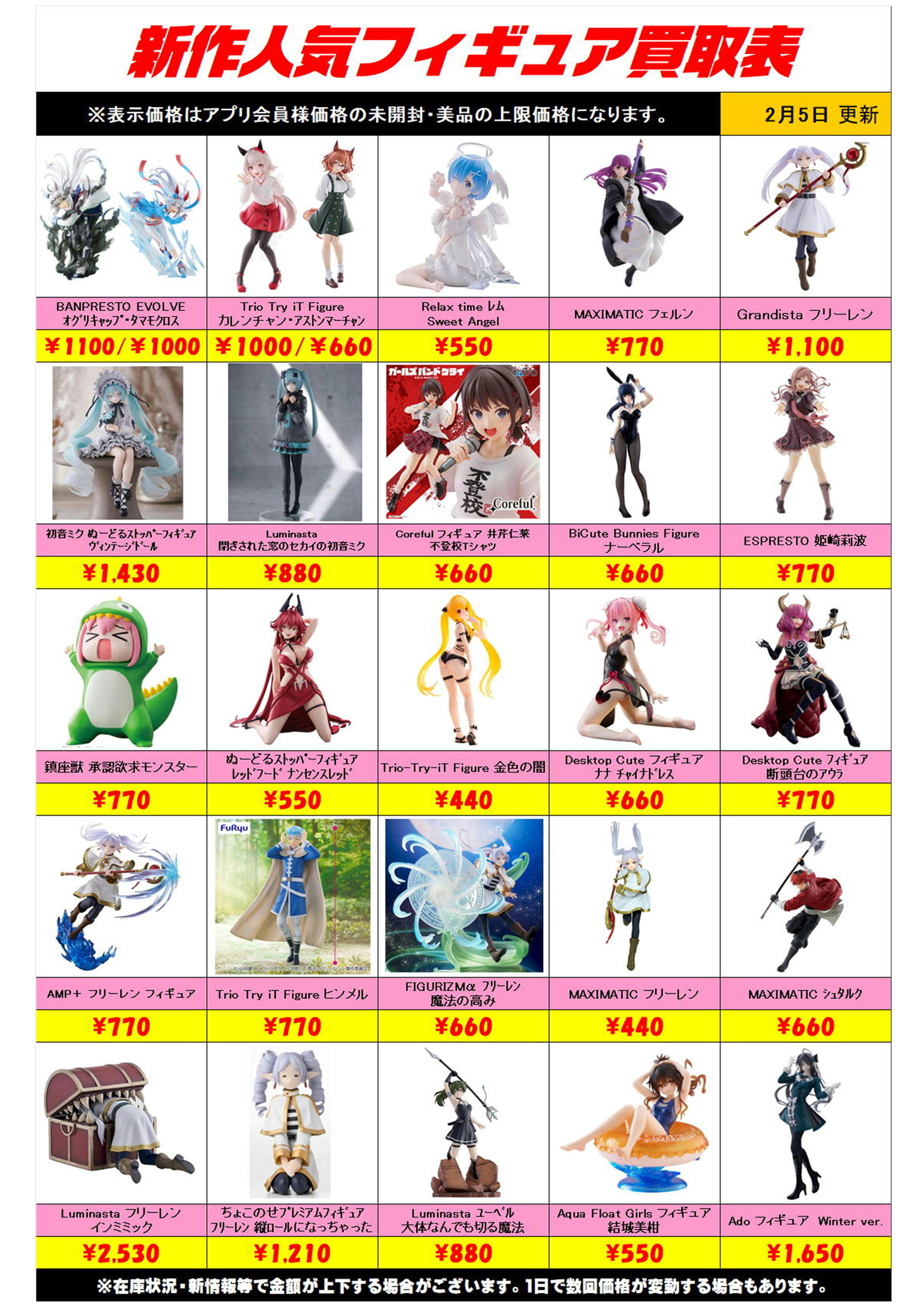 新作プライズフィギュア買取リスト更新しました! 2/5~ プラスアップキャンペーンも実施中です!