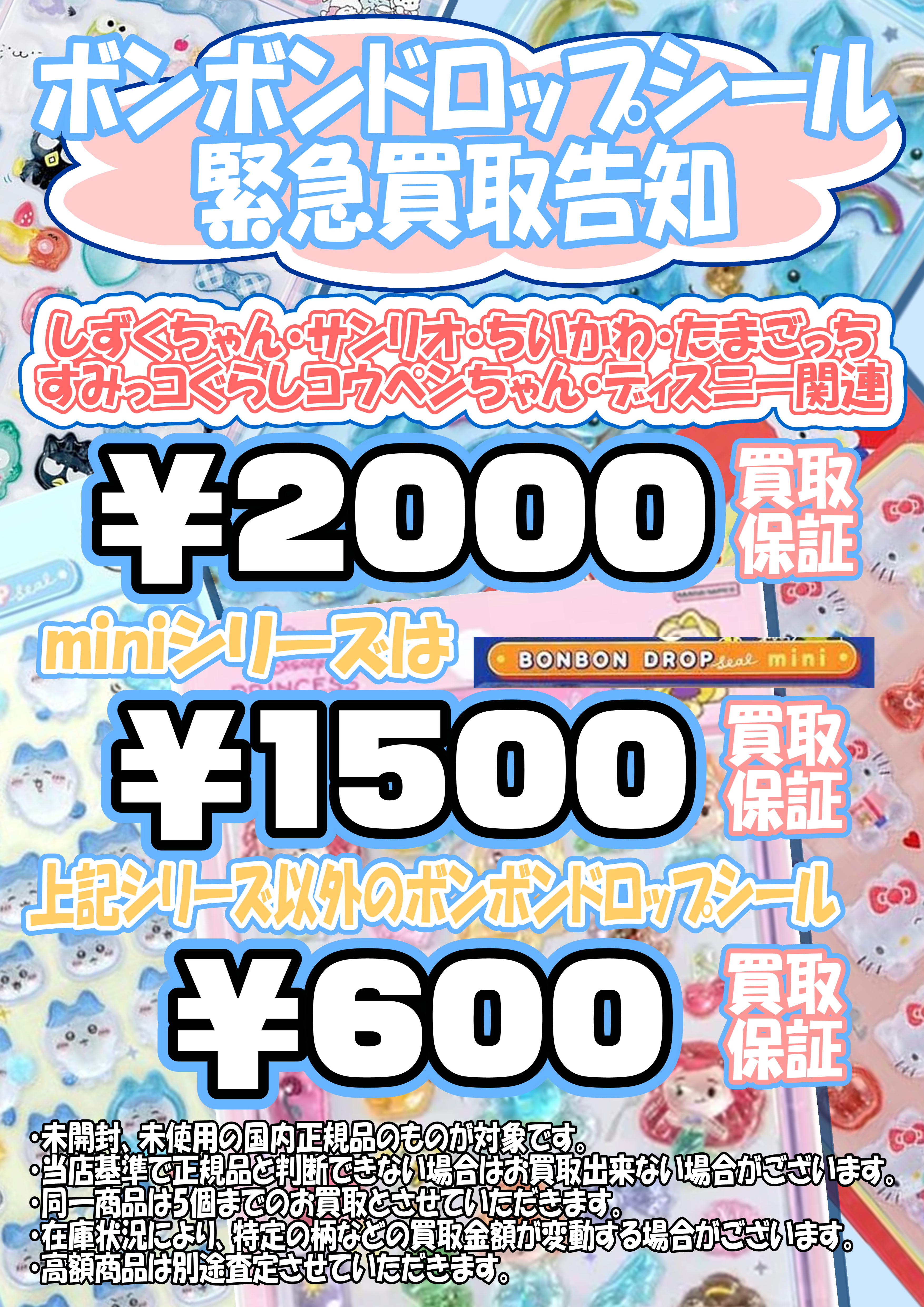 ・在庫状況により、特定の柄などの買取金額が変動する場合がございます。