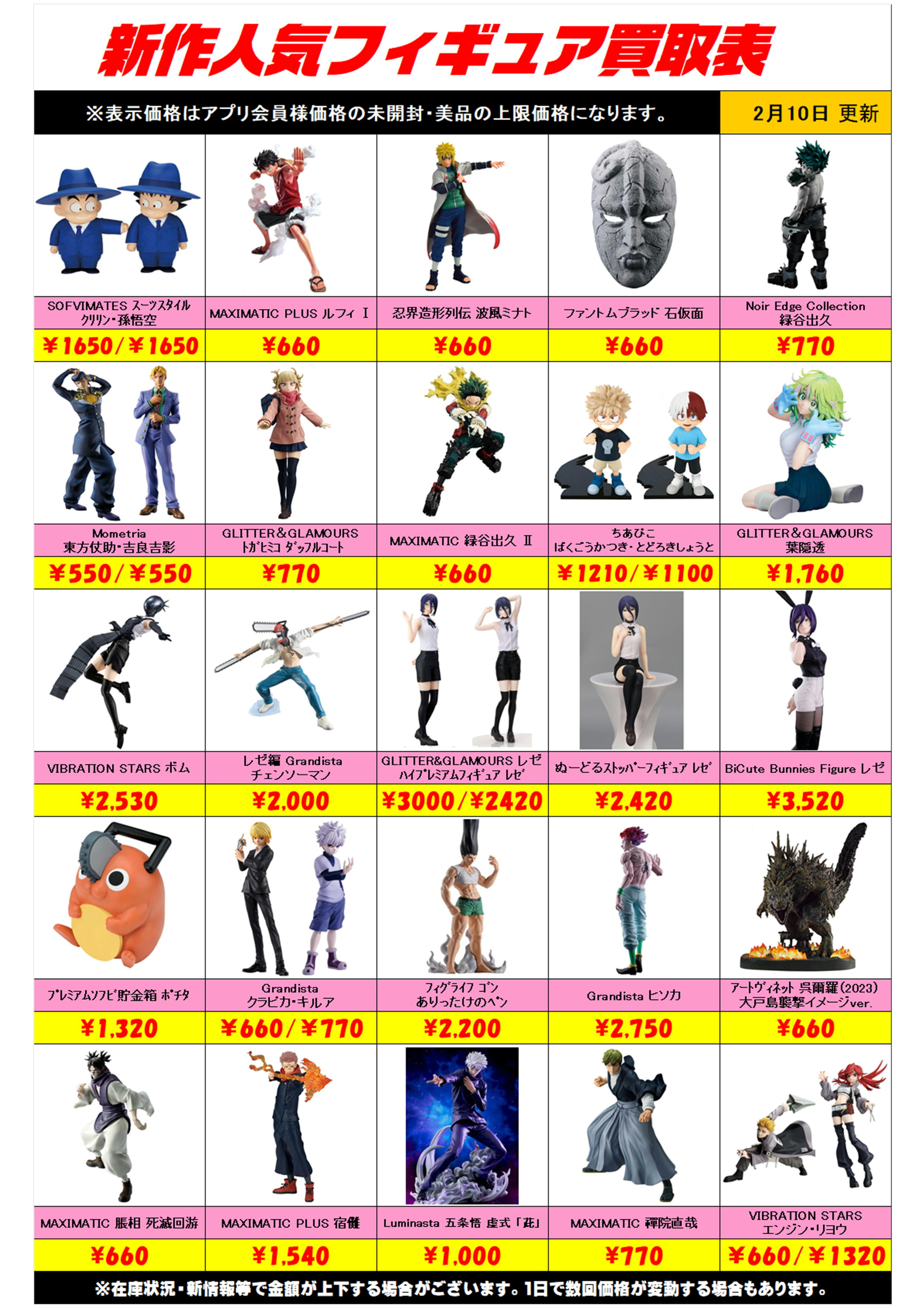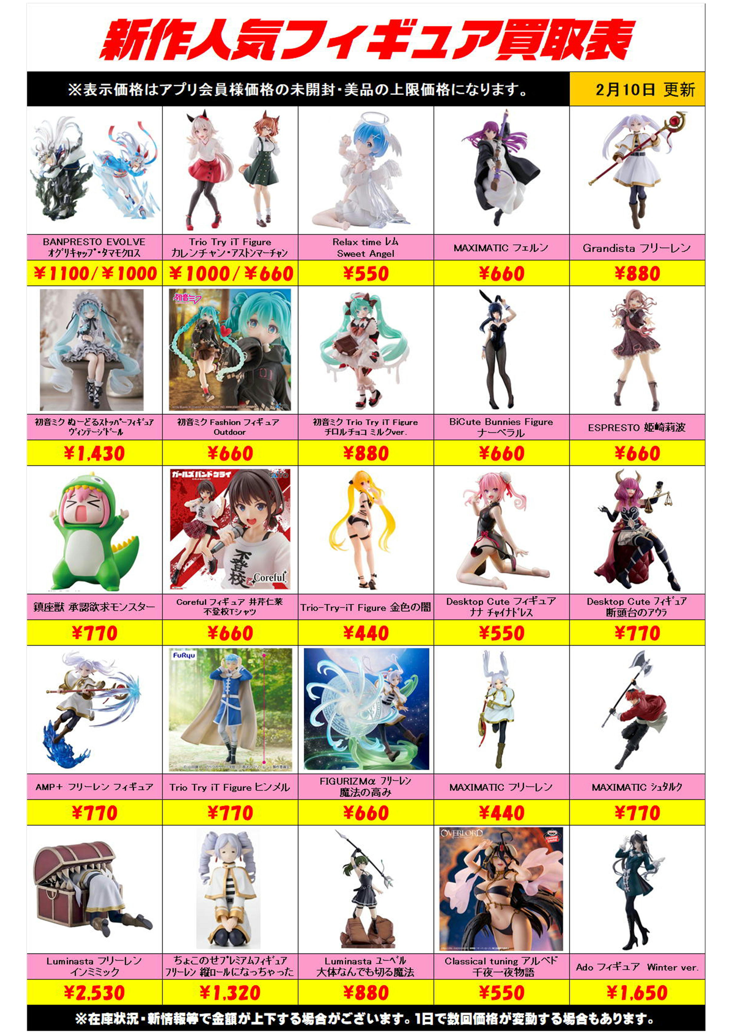 新作プライズフィギュア買取リスト更新しました! 2/10~ プラスアップキャンペーンも実施中です!