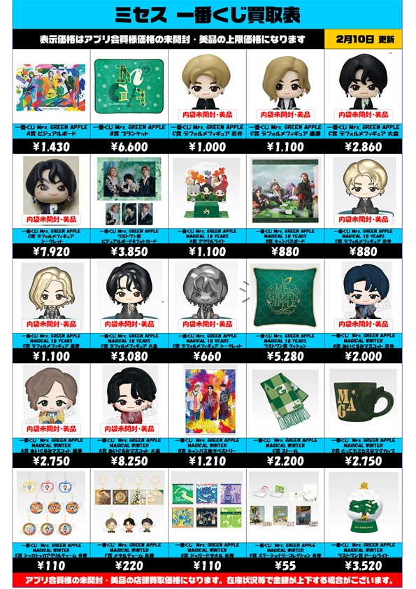 | 一番くじ Mrs. GREEN APPLE D賞 アクリルスタンド 各種 | 330 |
