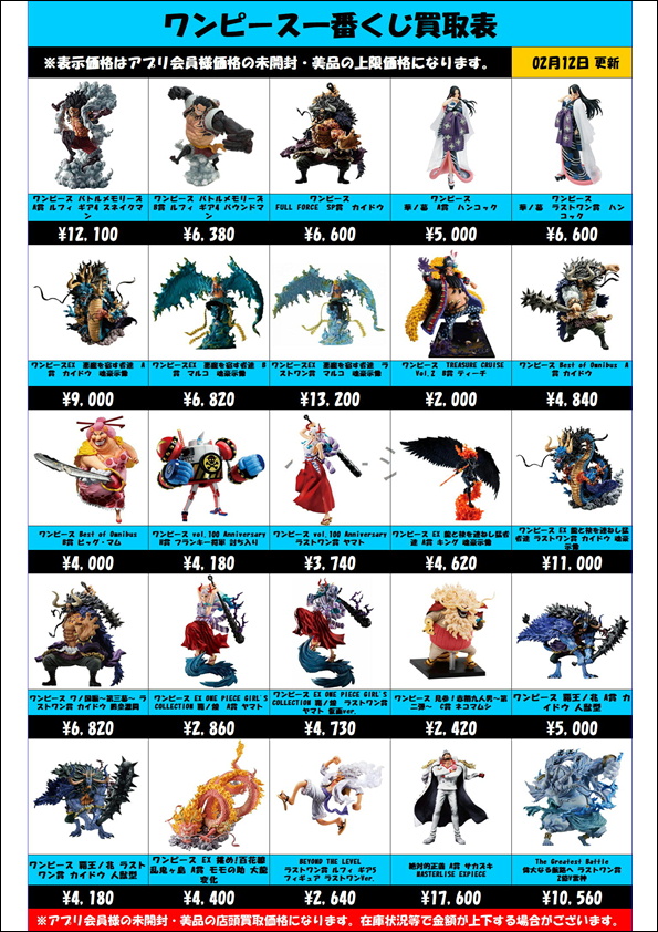 ワンピース一番くじ買取表 更新しました! 2/12~